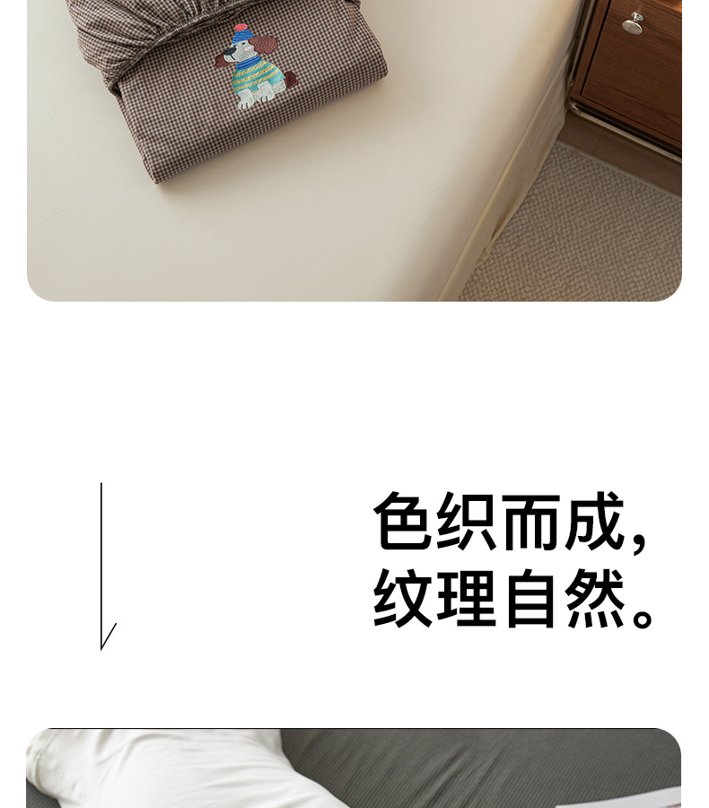 (总)卡姿家纺 2026春夏全棉色织水洗棉萌趣小刺绣四件套系列,企鹅精灵,小狗多米,幸运玛莉
