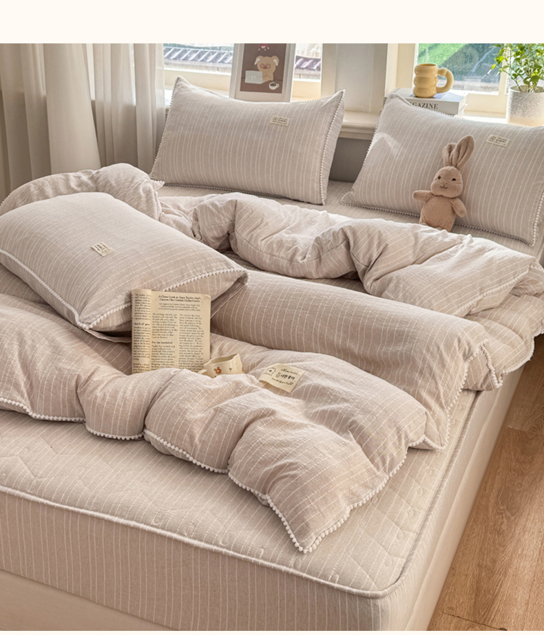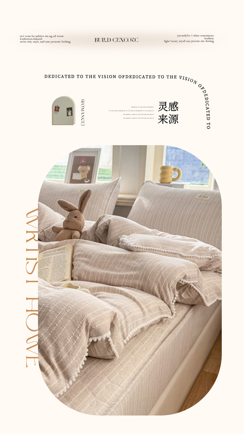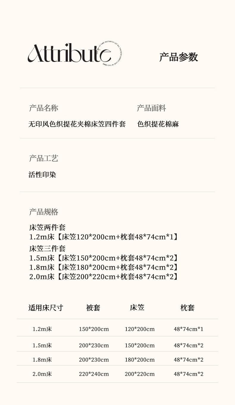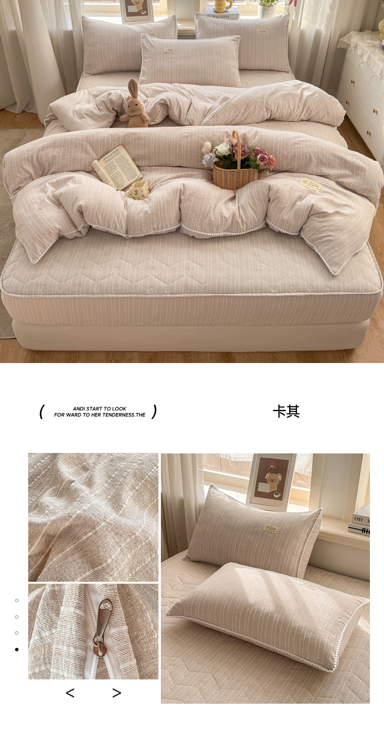 当前位置: 91家纺网 > 商品网购 > 床品套件 > 四件套 > 色织四件套 > 蝶帕家纺 2026新款无印色织提花加棉床笠四件套 卡其