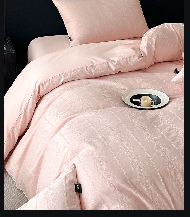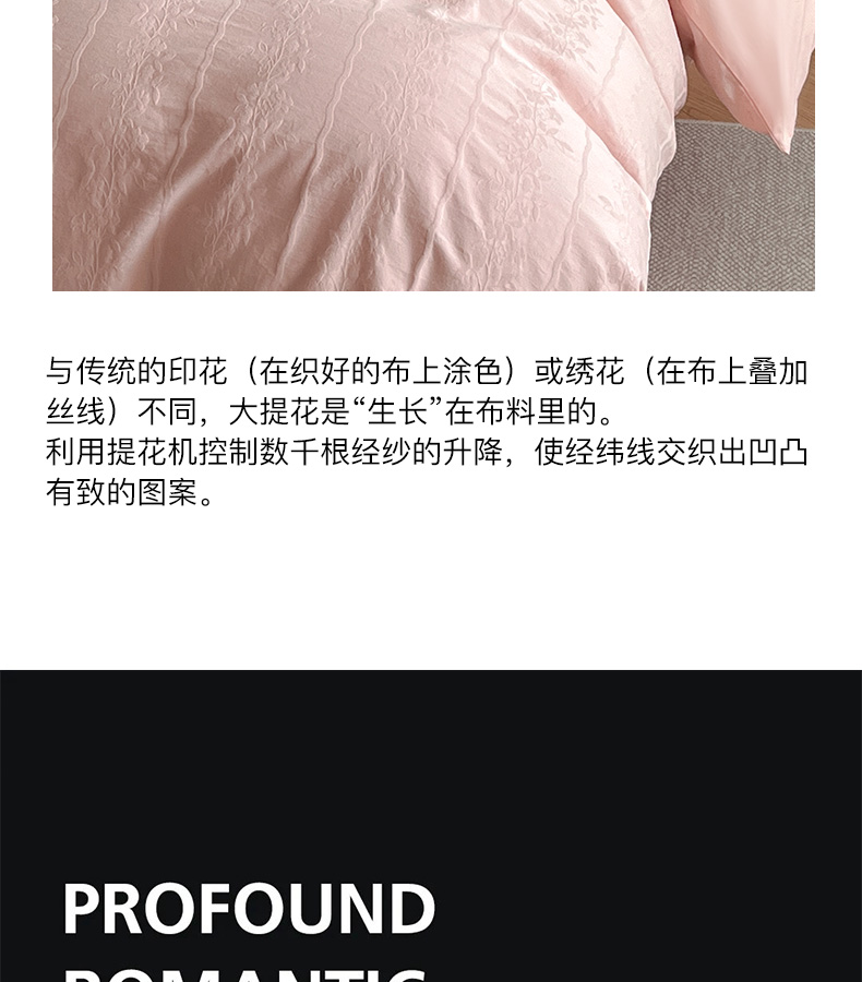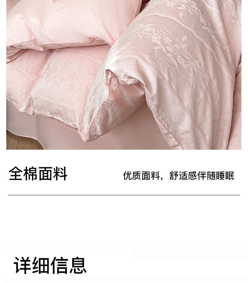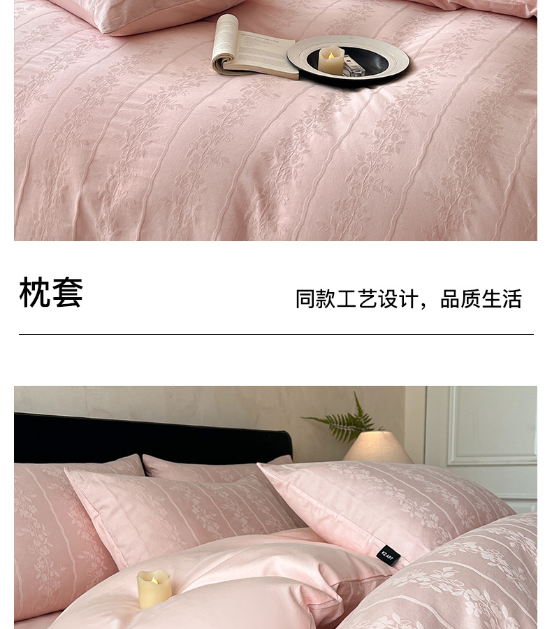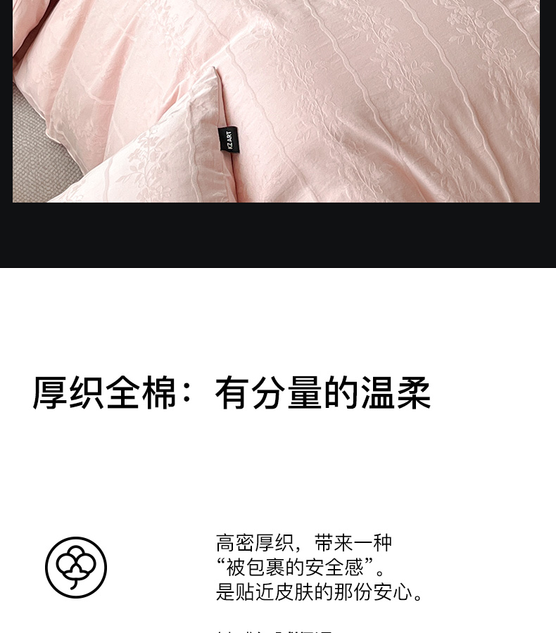 商品名称:卡姿家纺 2026春夏全棉高密厚织大提花轻奢四件套 浪漫情缘-粉