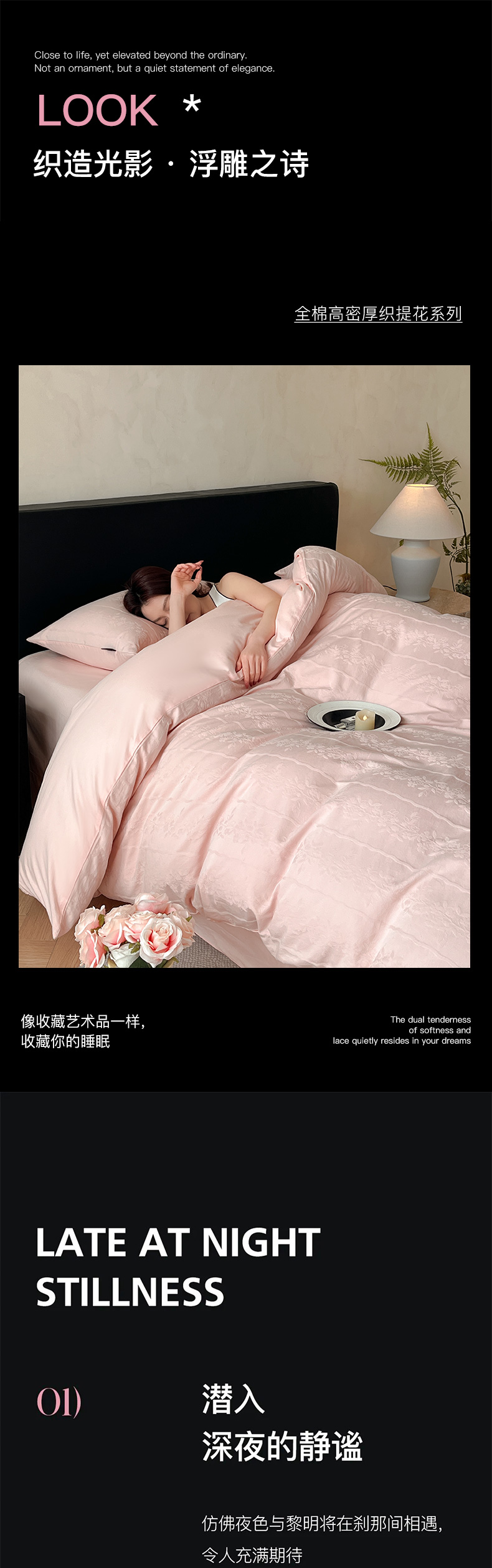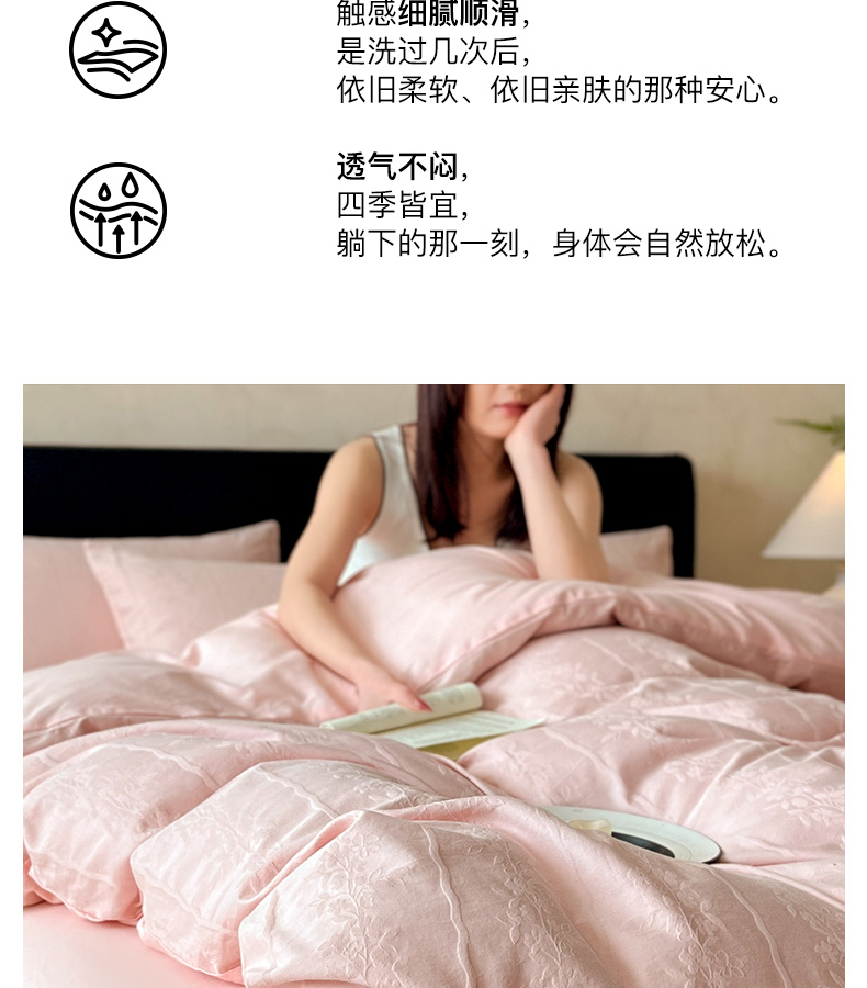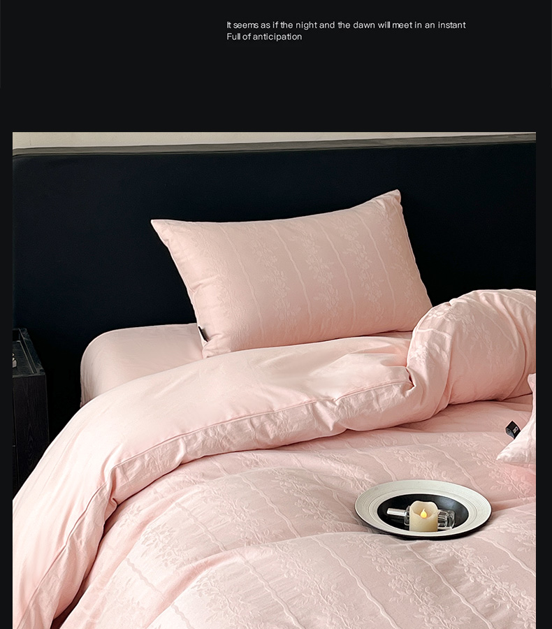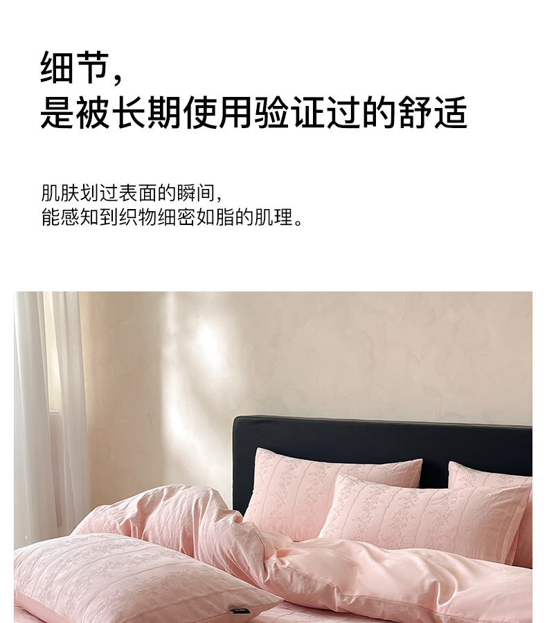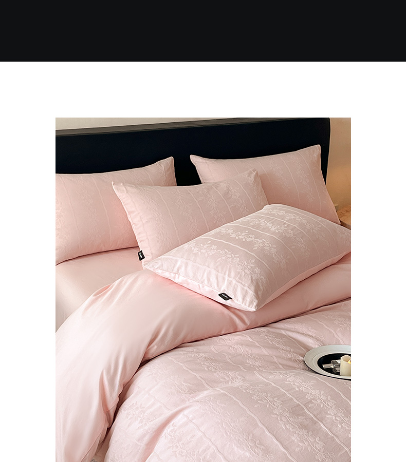 商品名称:卡姿家纺 2026春夏全棉高密厚织大提花轻奢四件套 浪漫情缘-粉