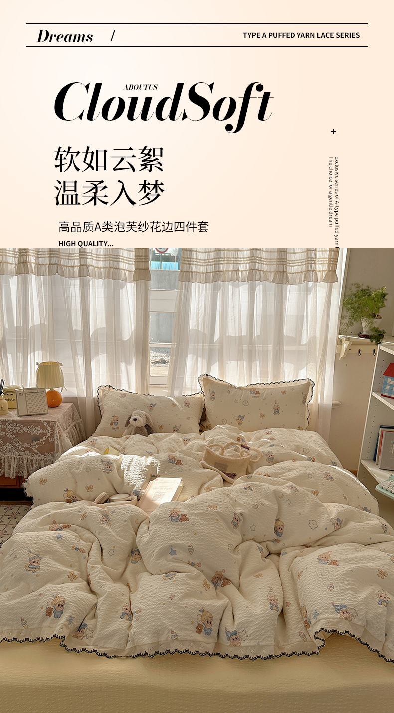 当前位置: 91家纺网 > 商品网购 > 床品套件 > 四件套 > 其它四件套 > 凯洛奇 2026新款高品质A类泡芙纱甜栗花边套件系列一小红书推荐 星梦乐园
