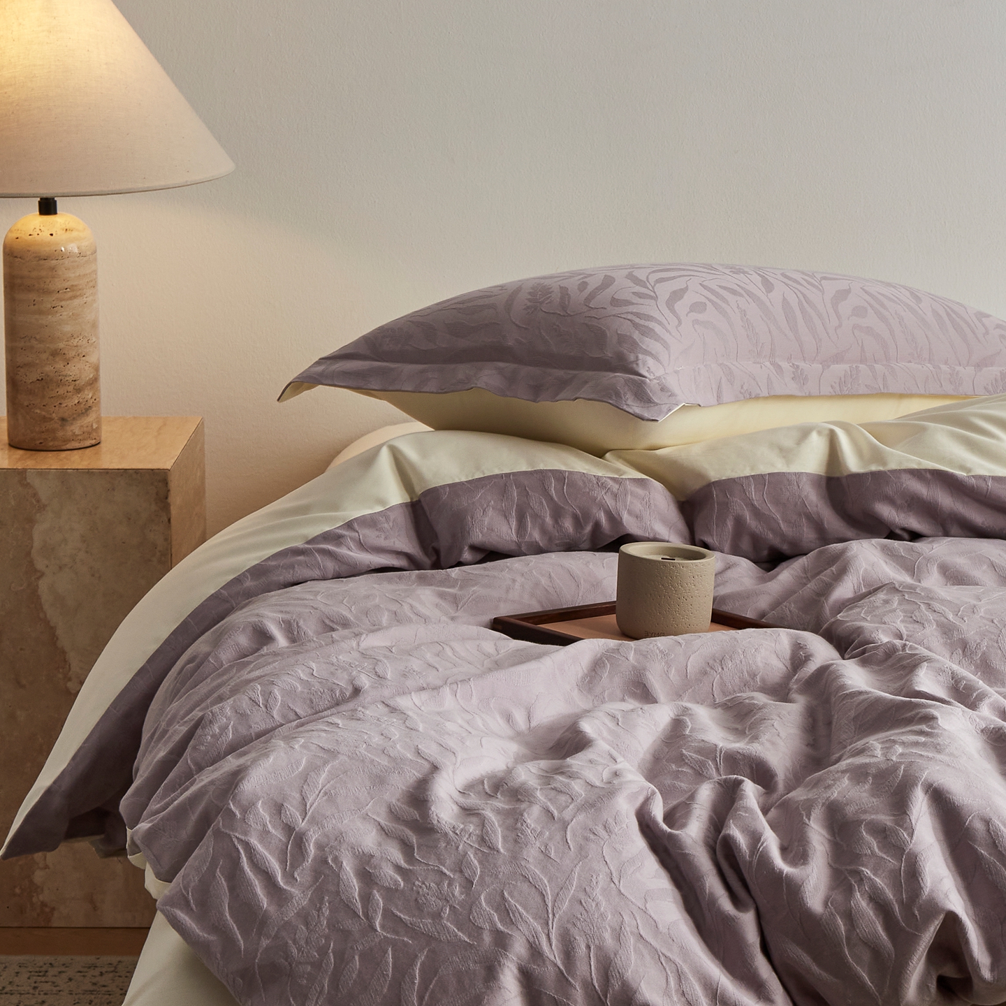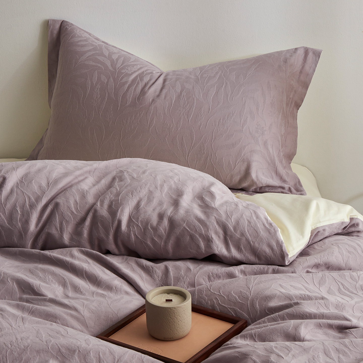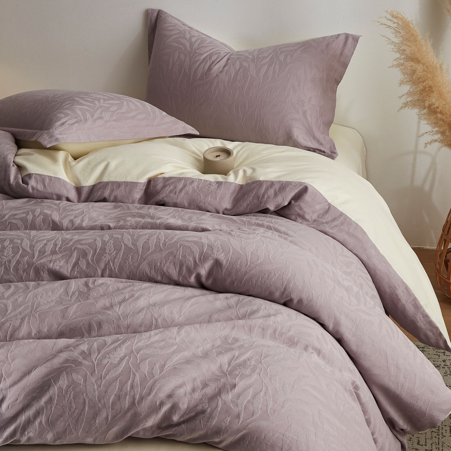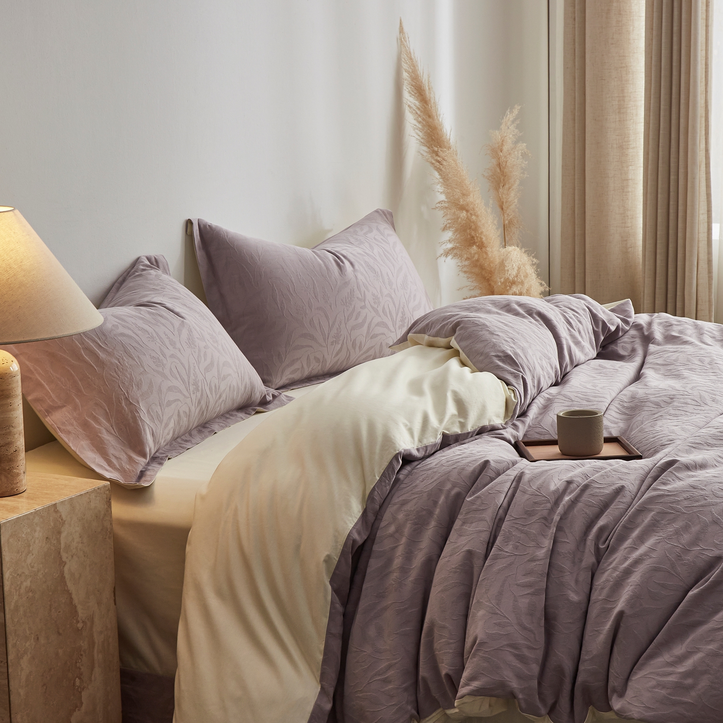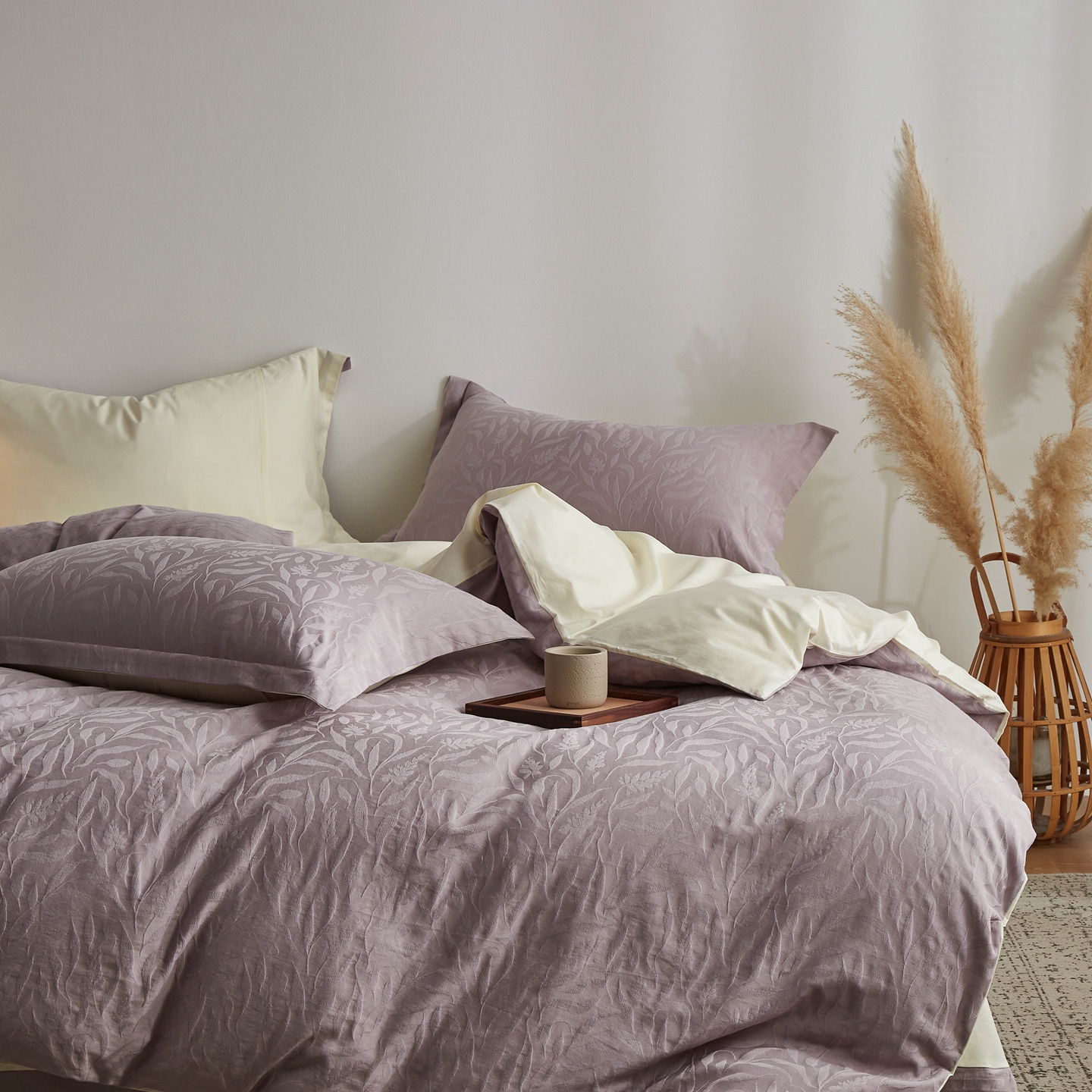 商品名称:顾家家居 2026新款AB面全棉厚织提花四件套 叶韵-雾紫