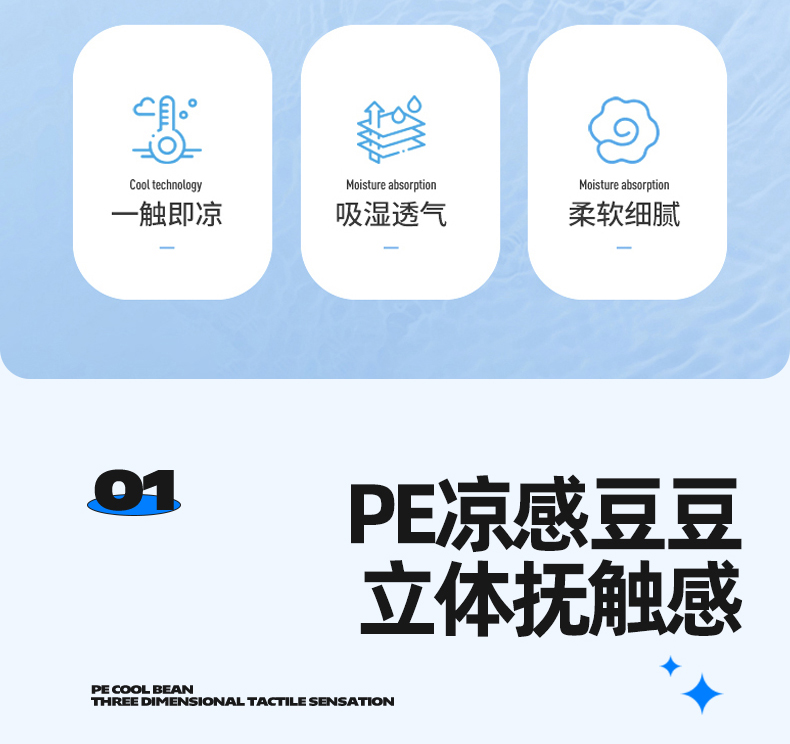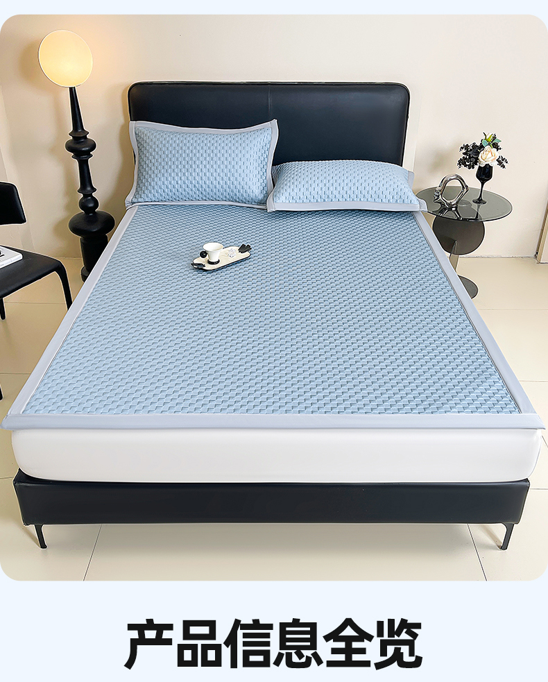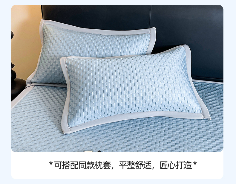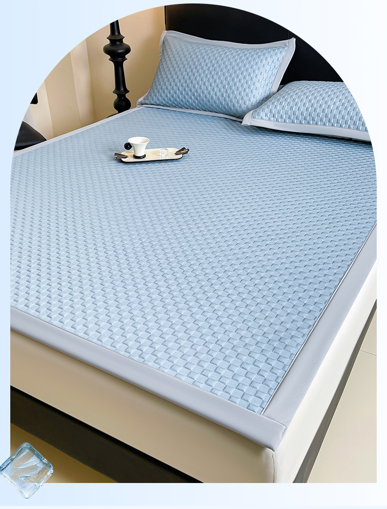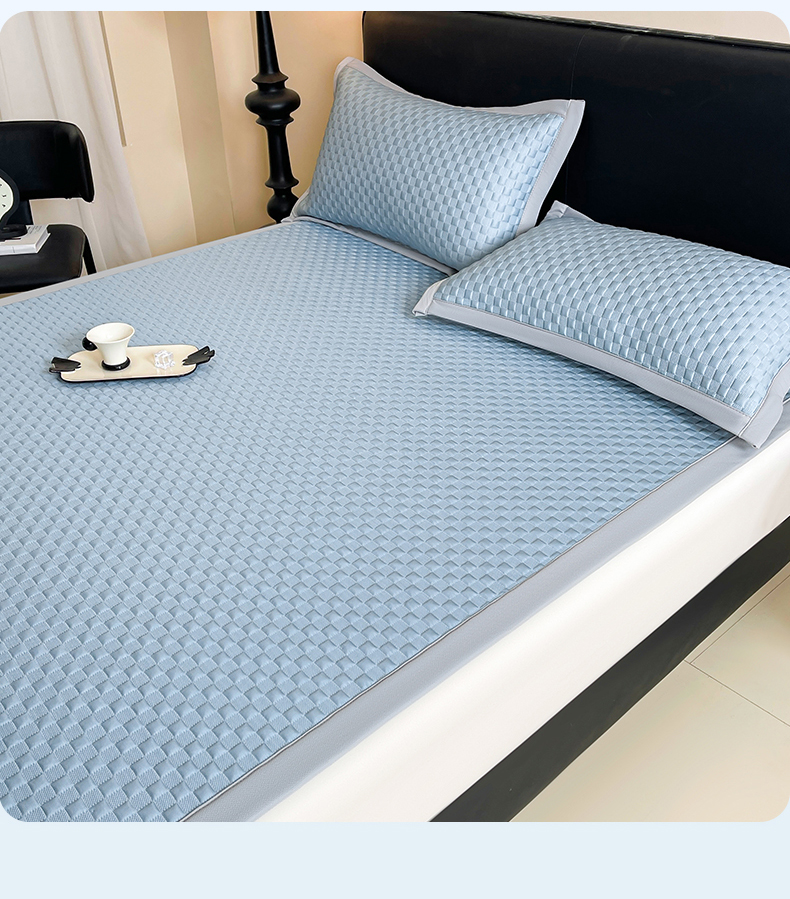 商品名称:雯豆家纺 2026新款A类PE凉席三件套冰豆豆席A类纯色凉豆豆席子可水洗空调软席 方格款-海涛蓝