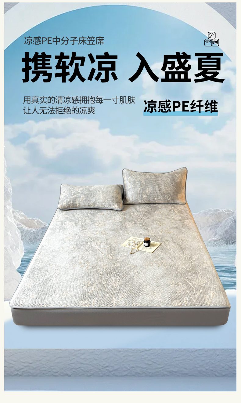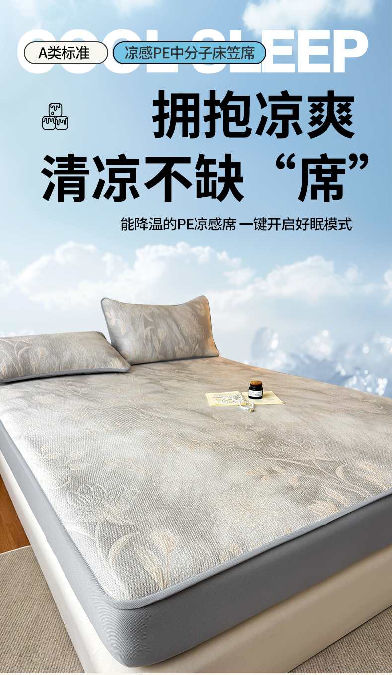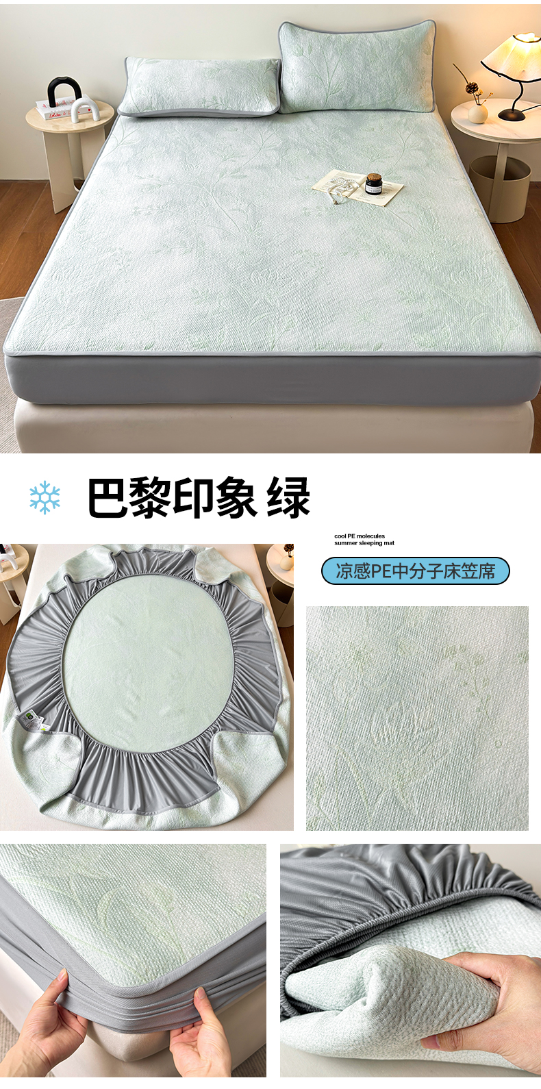 (总)柔品 2026春夏新款PE中分子床笠款凉席席子,巴黎印象 粉,巴黎印象 灰,巴黎印象 卡其,巴黎印象 绿,梦里繁花 粉,梦里繁花 灰,梦里繁花 蓝,梦里繁花 绿
