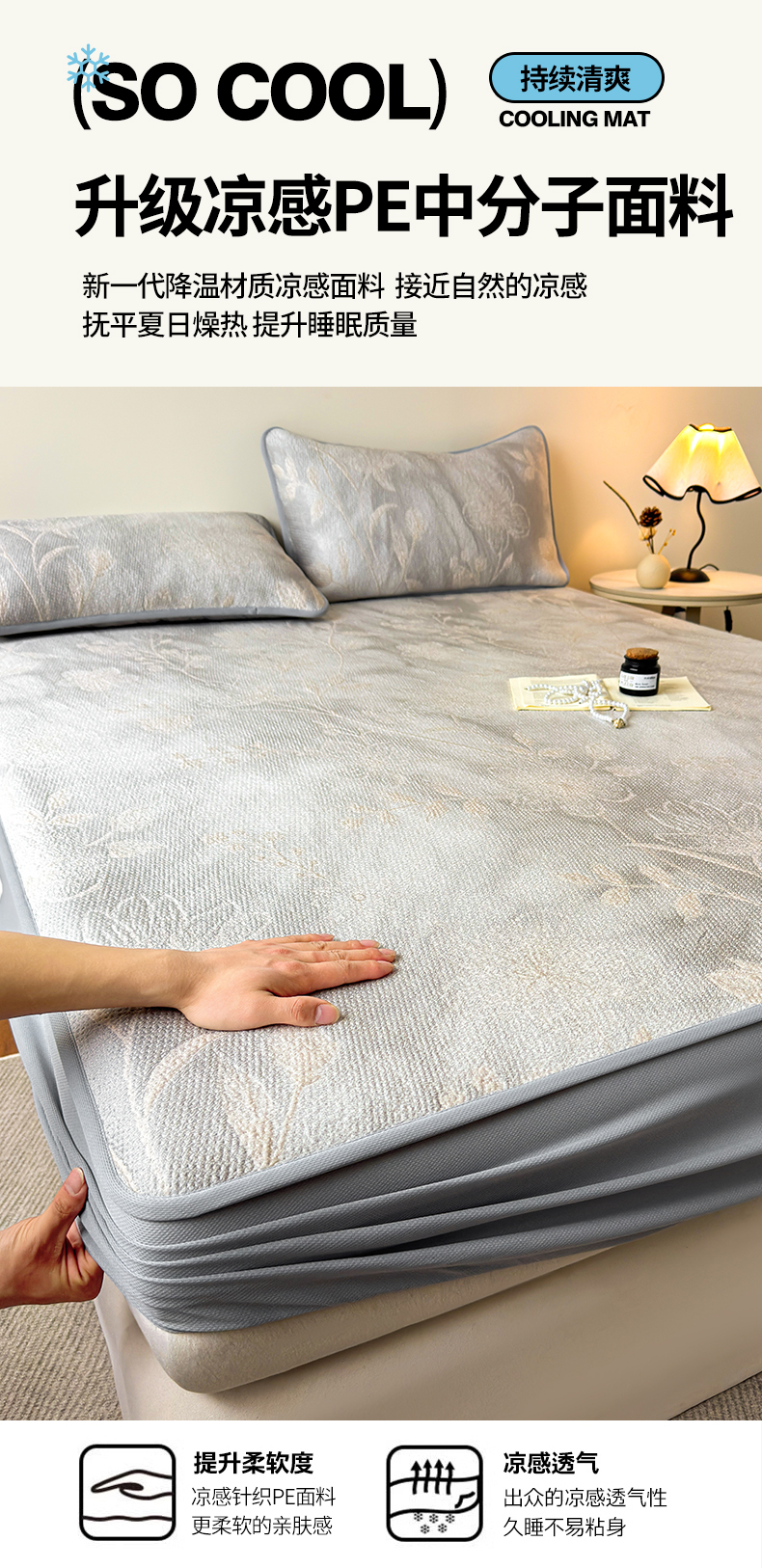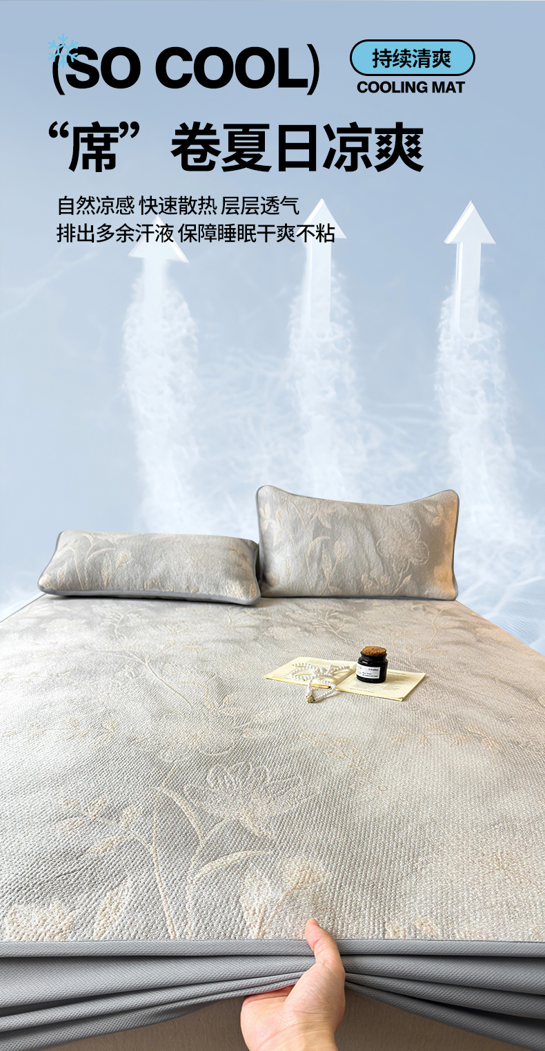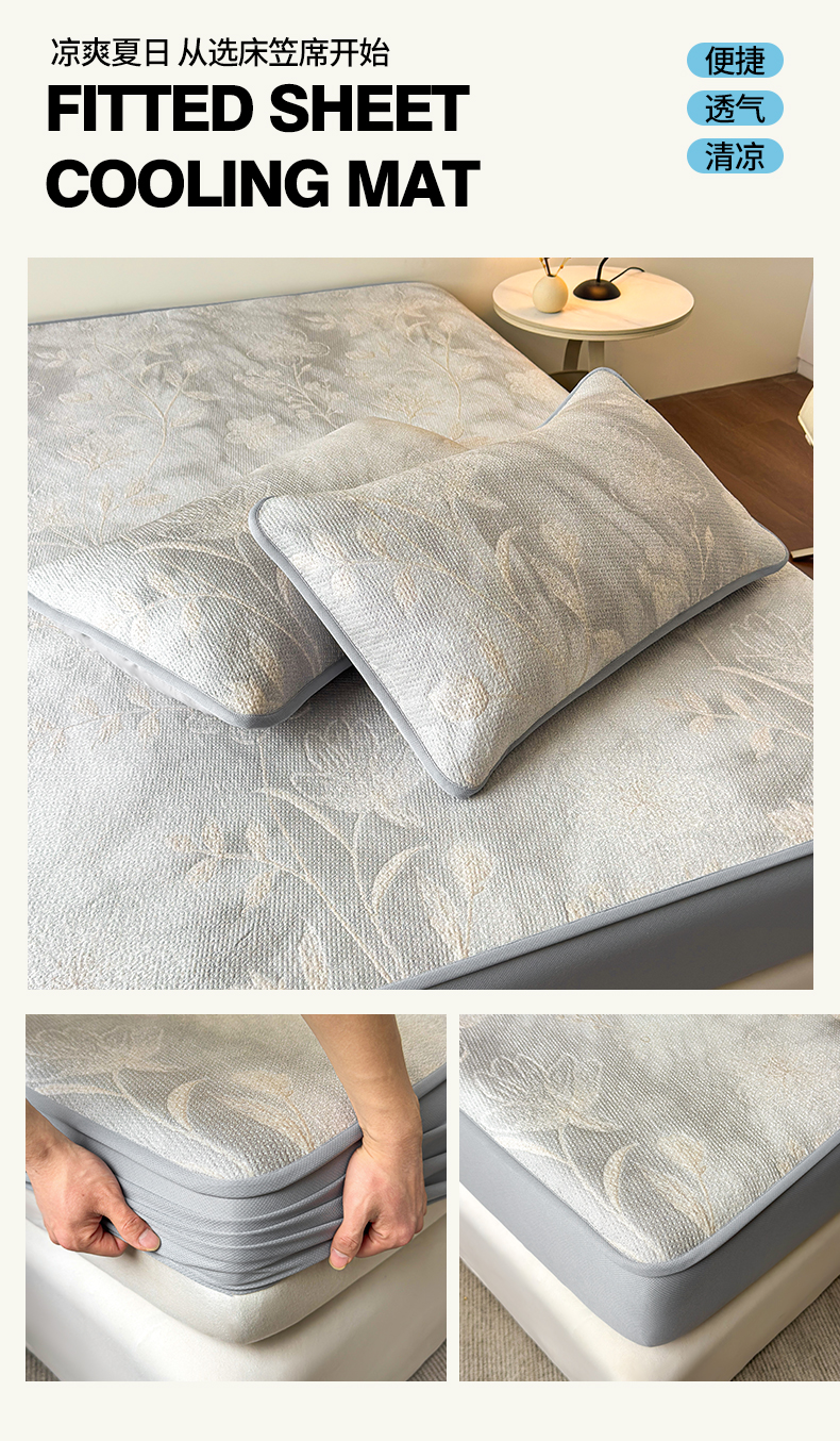(总)柔品 2026春夏新款PE中分子床笠款凉席席子,巴黎印象 粉,巴黎印象 灰,巴黎印象 卡其,巴黎印象 绿,梦里繁花 粉,梦里繁花 灰,梦里繁花 蓝,梦里繁花 绿