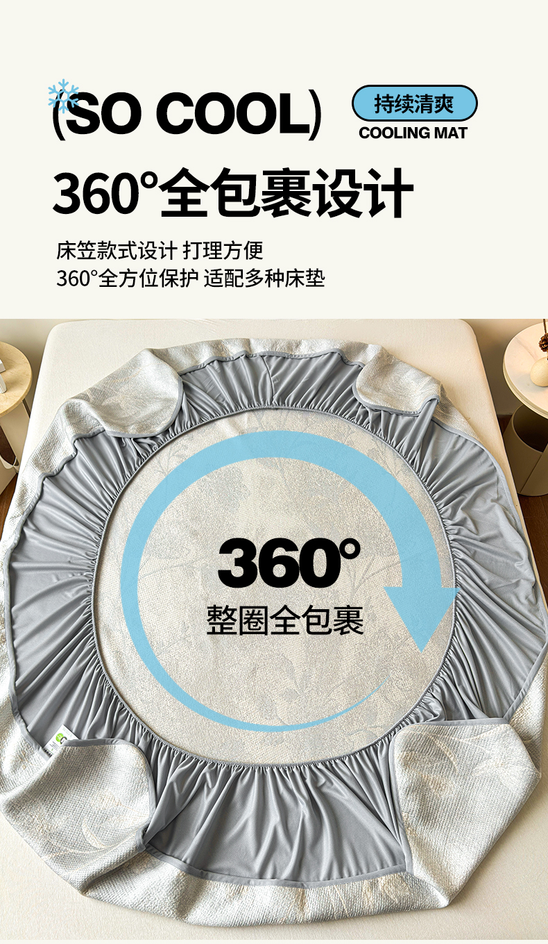• 91家纺网 家纺一手货源 找家纺 柔品 2026春夏新款PE中分子床笠款凉席席子 巴黎印象 灰
