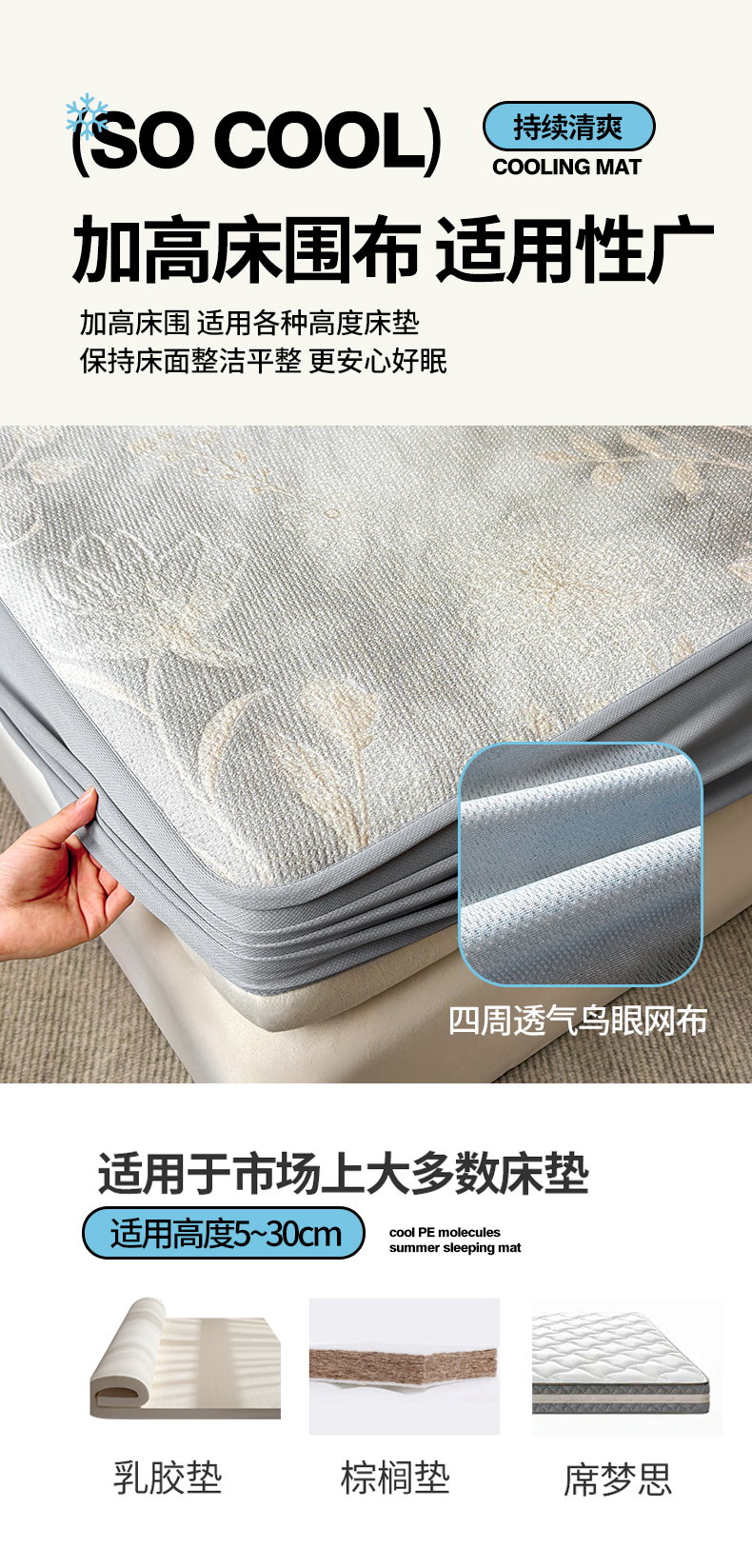 (总)柔品 2026春夏新款PE中分子床裙款凉席席子-梦里繁花,床裙 梦里繁花 粉,床裙 梦里繁花 蓝,床裙 梦里繁花 绿,床裙梦里繁花 灰