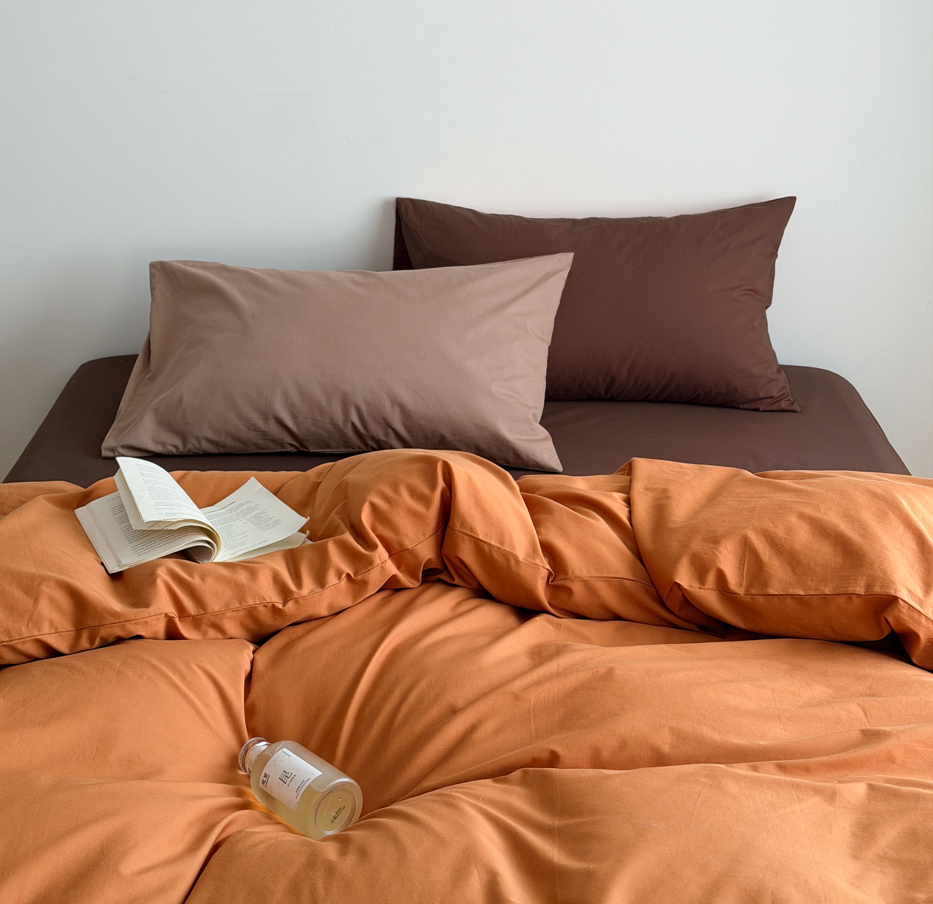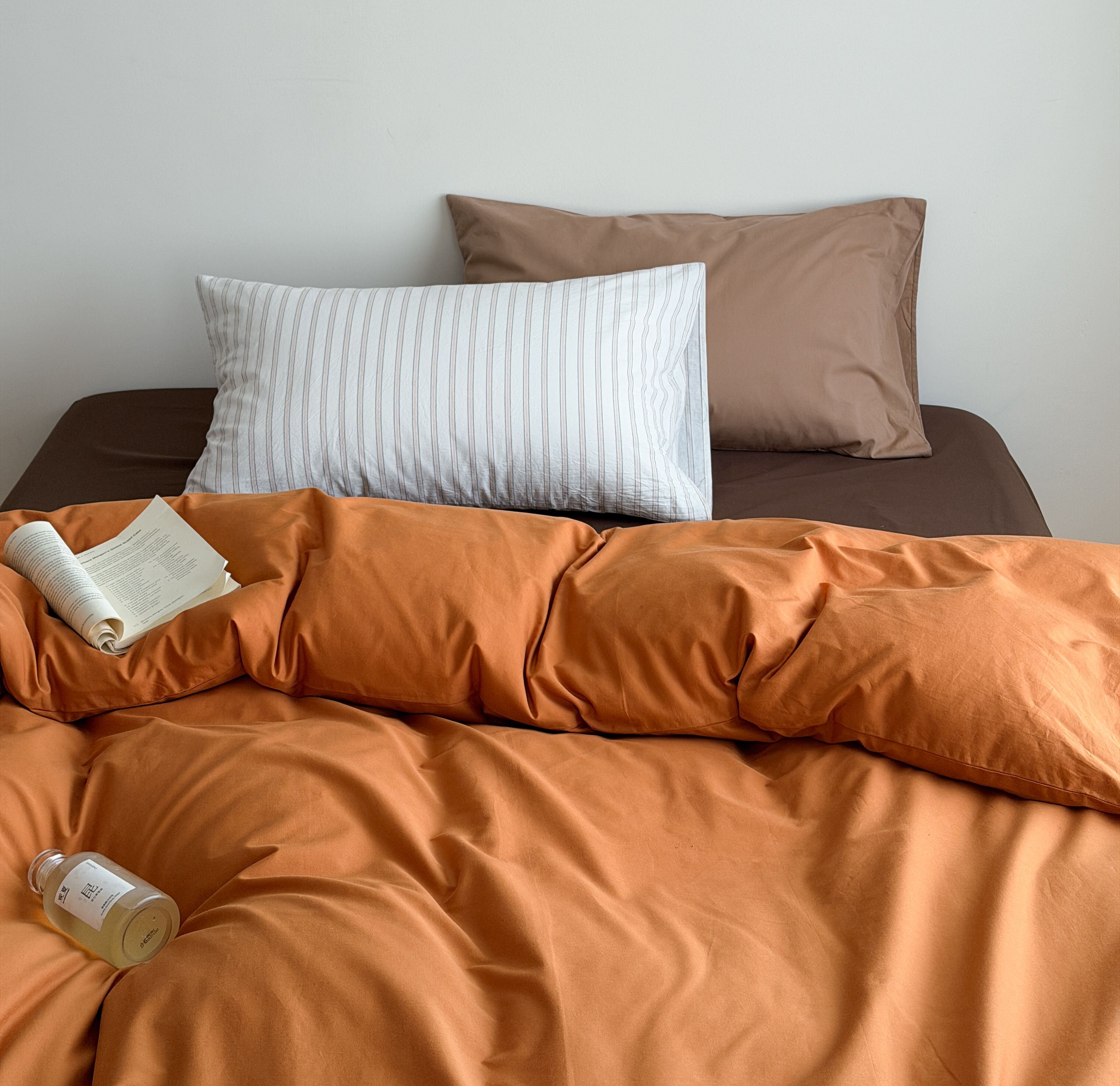 当前位置: 91家纺网 > 商品网购 > 床品套件 > 四件套 > 全棉普通四件套 > 蜜宿 2026新款纯色混搭全棉纯棉40s水洗棉四件套 焦糖日落(枕套粉黑竖条+摩卡)