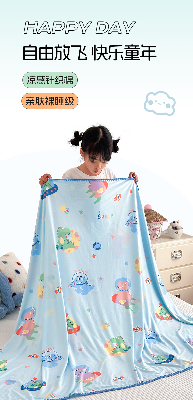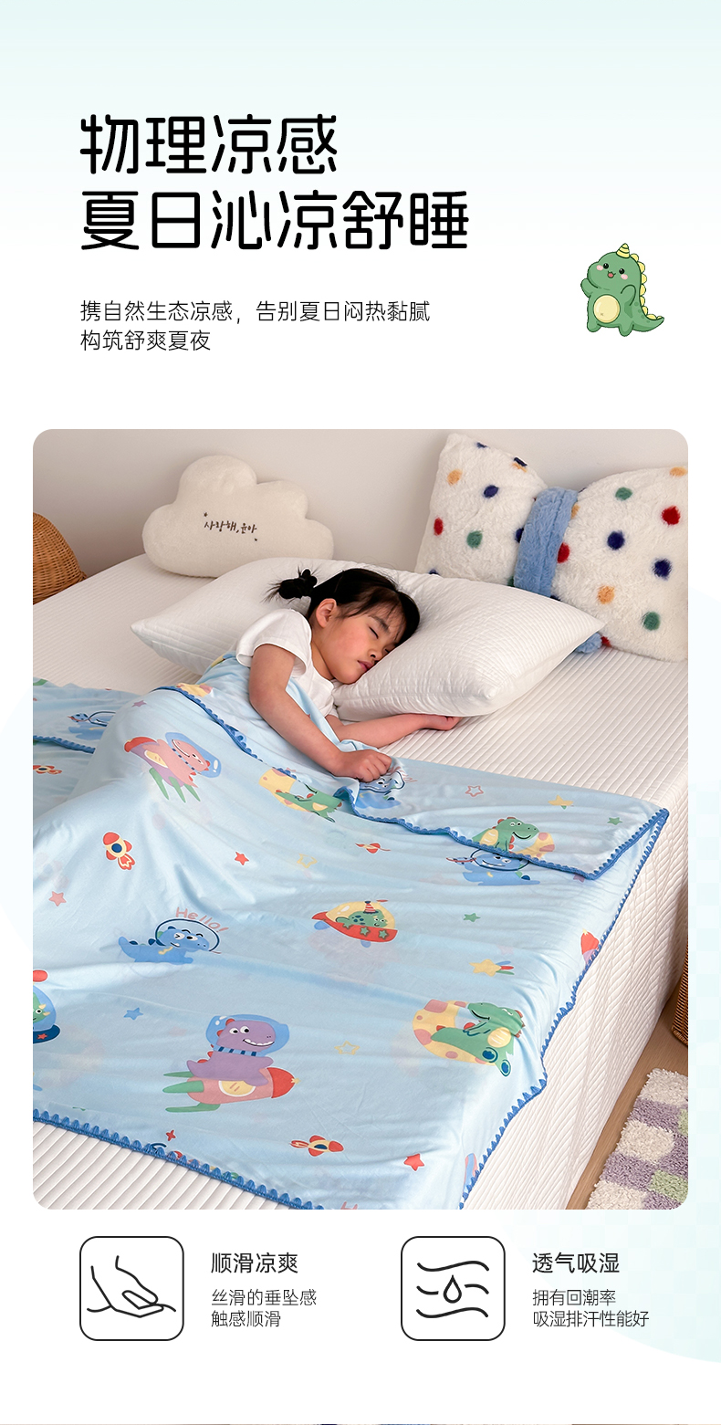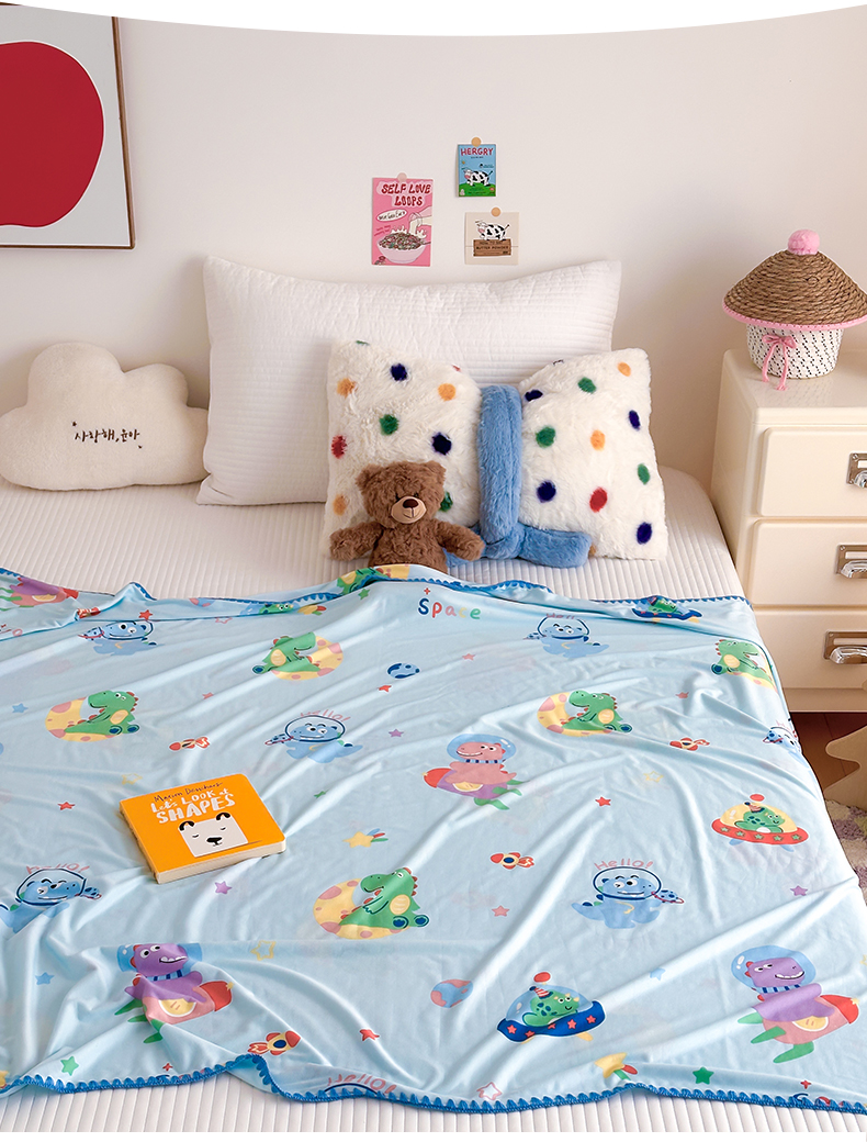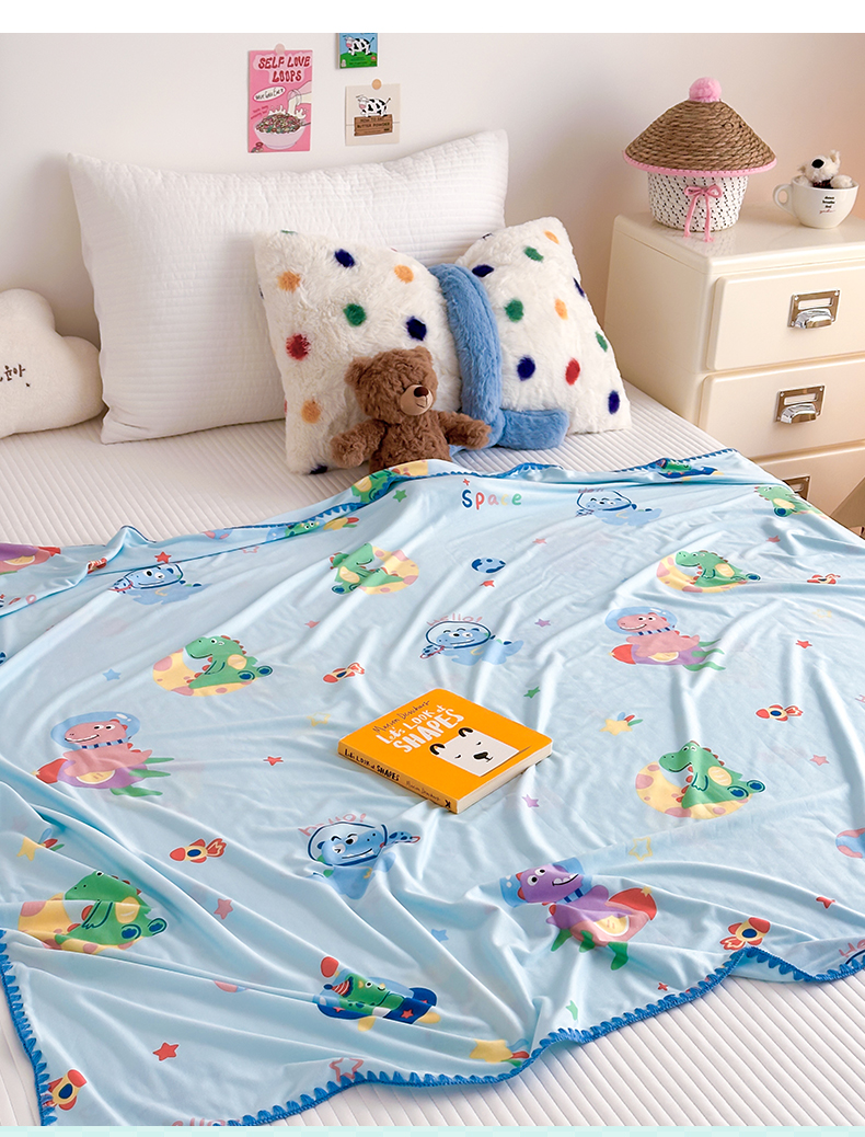 被子 > 夏被 > 嗨生活 2026新款贝壳边婴儿裸睡级凉感针织毯幼儿园夏被儿童夏被毯子盖毯午睡毯旅行毯夏凉 快乐恐龙