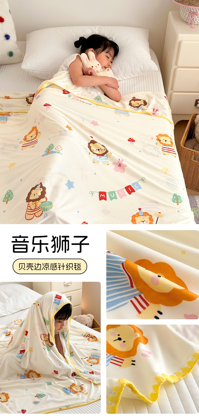 (总)嗨生活 2026新款贝壳边婴儿裸睡级凉感针织毯幼儿园夏被儿童夏被毯子盖毯午睡毯旅行毯夏凉,动物乐园,飞驰汽车,果果派对,恐龙世界,快乐恐龙,马力全开,萌萌小兔,奇趣企鹅,小星人,音乐狮子,樱桃女孩,组合图仅供展示-不可下单