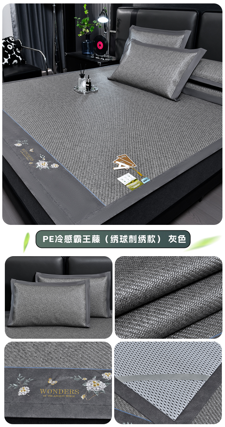 当前位置: 91家纺网 > 商品网购 > 床上用品 > 凉席 > 藤席 > 小牛席业 2026新款PE冷感霸王藤系列(绣球花开刺绣款)凉席藤席冰藤席冰丝席可机洗凉感冰丝席豆豆席PE霸王藤 黄色
