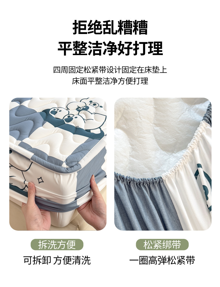 (总)希廷顿 2026新款印花夹棉防水床垫,小恐龙,luck熊,草莓熊,马上暴富,萌宠狗,梦幻森林,太空人,小煤球,星星犬,熊本熊,熊猫攀竹,云之恋