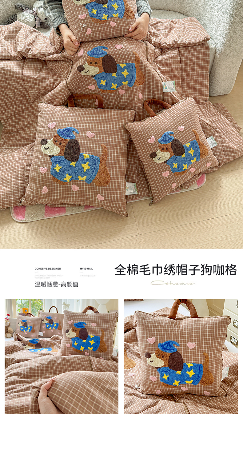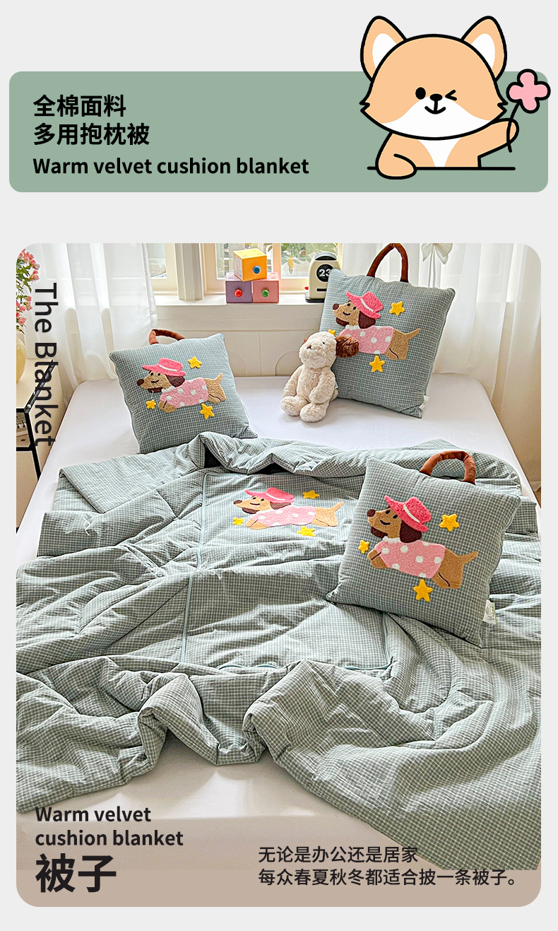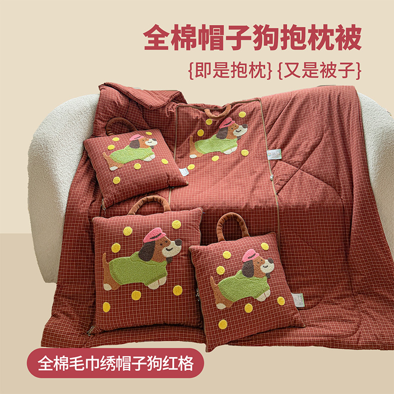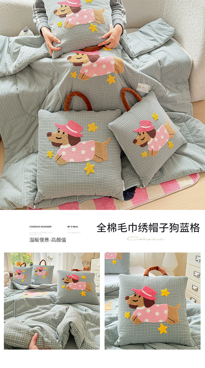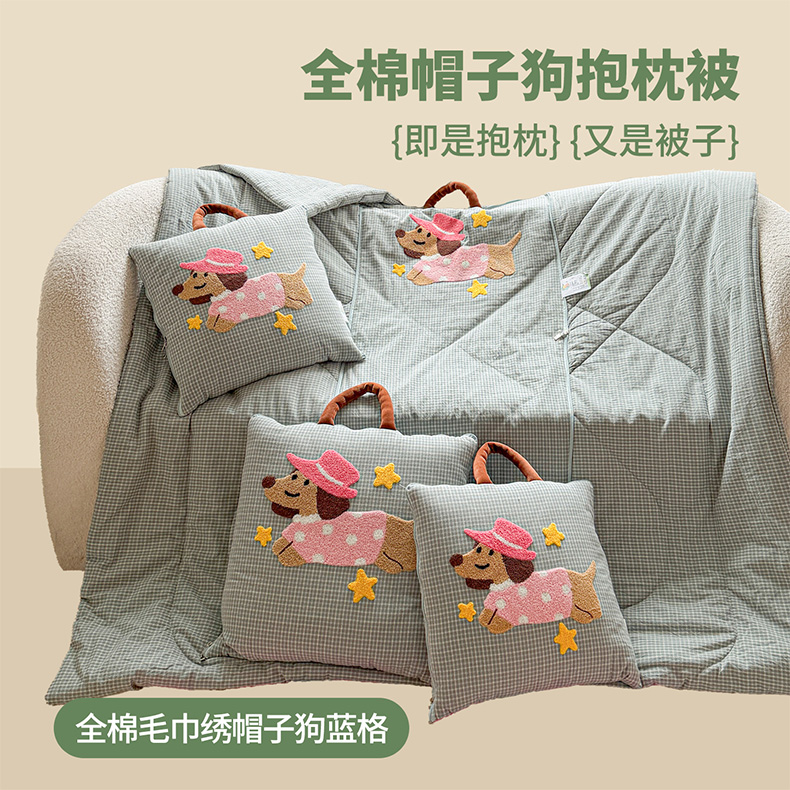 当前位置: 91家纺网 > 商品网购 > 居家日用 > 靠垫/抱枕 > 古本家居 2026新款全棉毛巾绣帽子狗抱枕被系列 全棉毛巾绣帽子狗蓝格