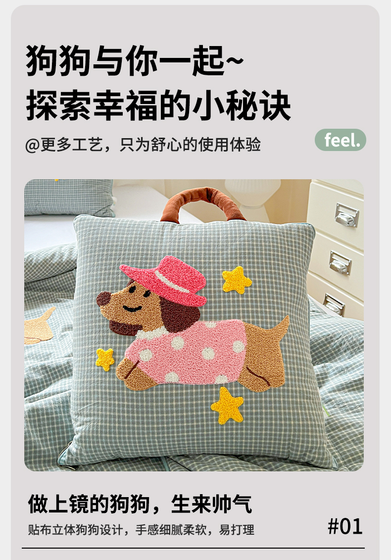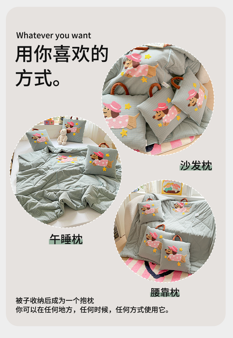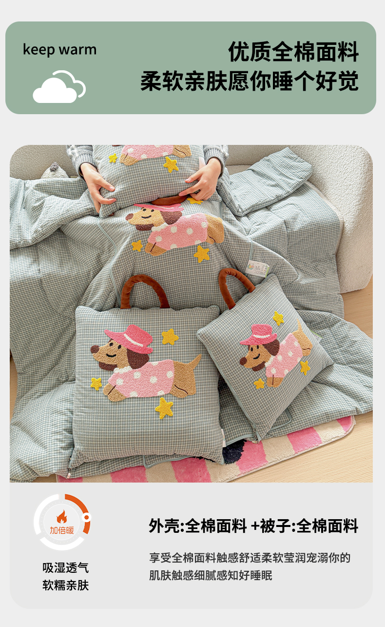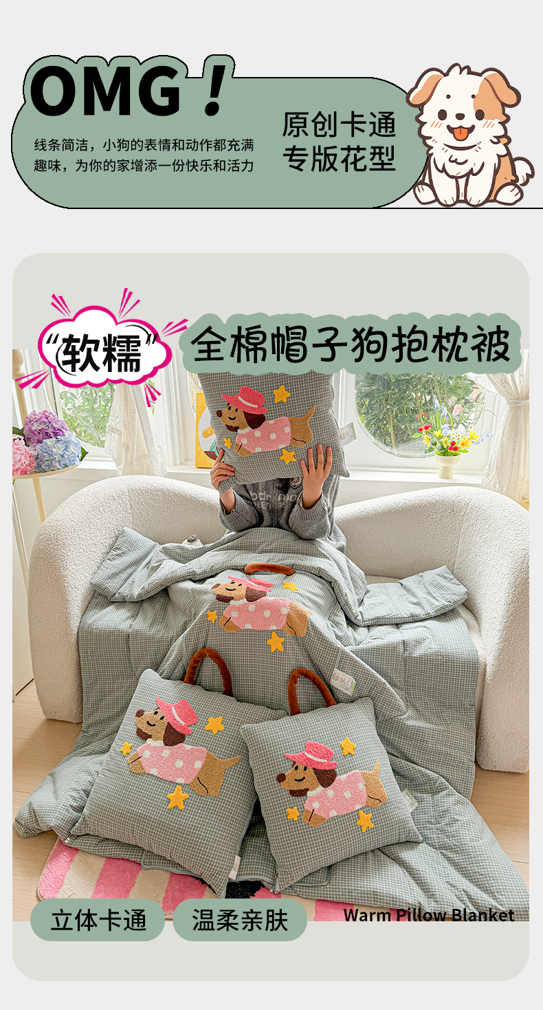 当前位置: 91家纺网 > 商品网购 > 居家日用 > 靠垫/抱枕 > 古本家居 2026新款全棉毛巾绣帽子狗抱枕被系列 全棉毛巾绣帽子狗蓝格