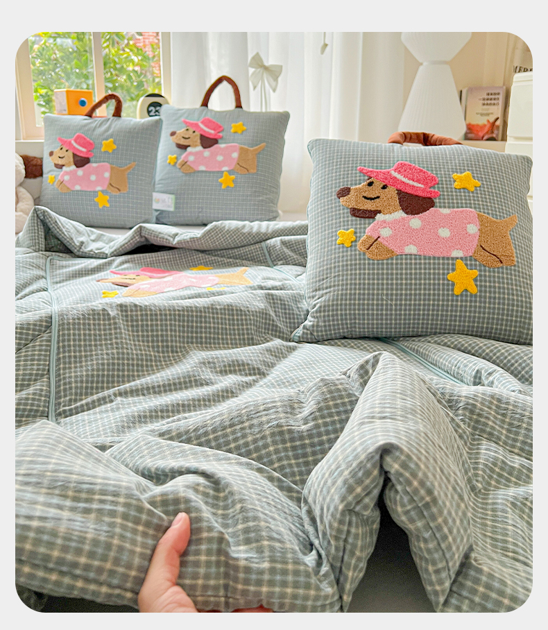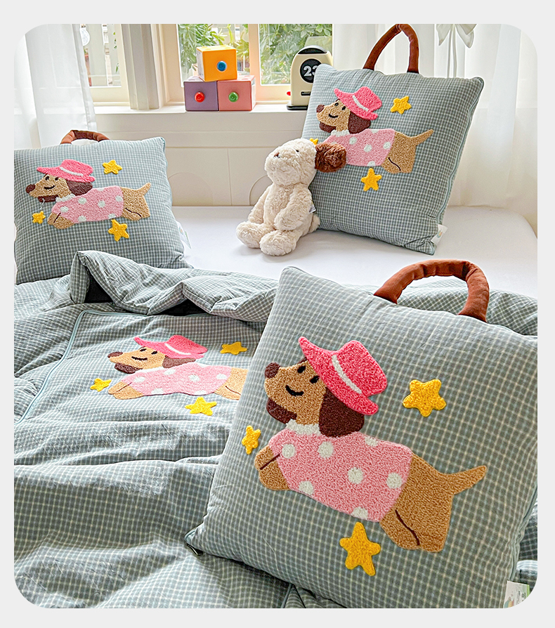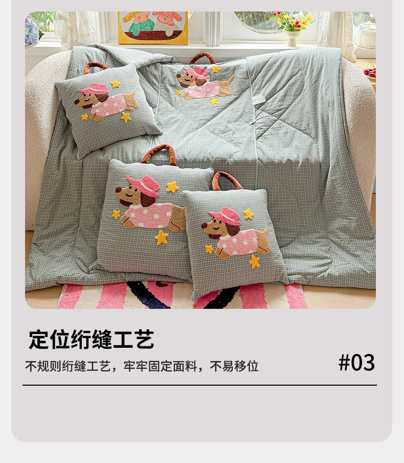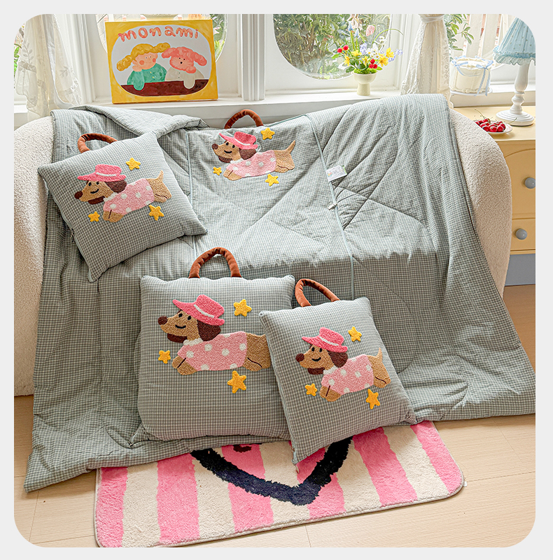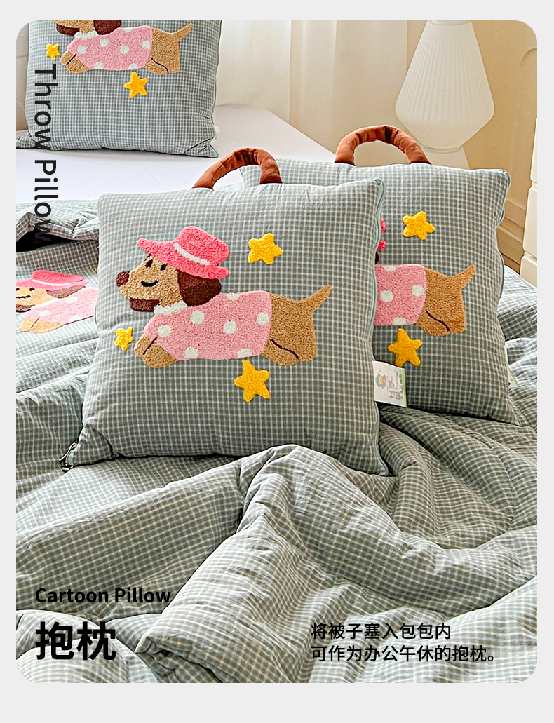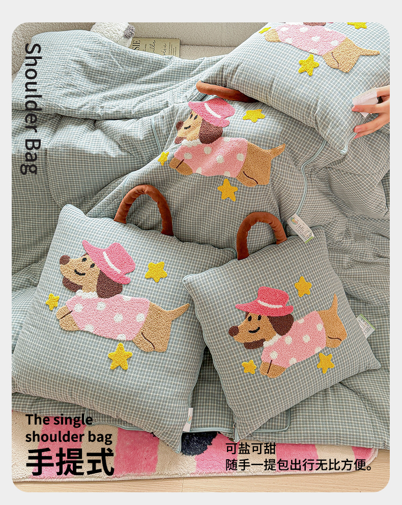 当前位置: 91家纺网 > 商品网购 > 居家日用 > 靠垫/抱枕 > 古本家居 2026新款全棉毛巾绣帽子狗抱枕被系列 全棉毛巾绣帽子狗蓝格