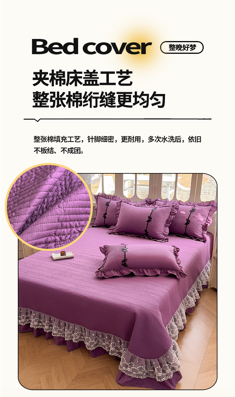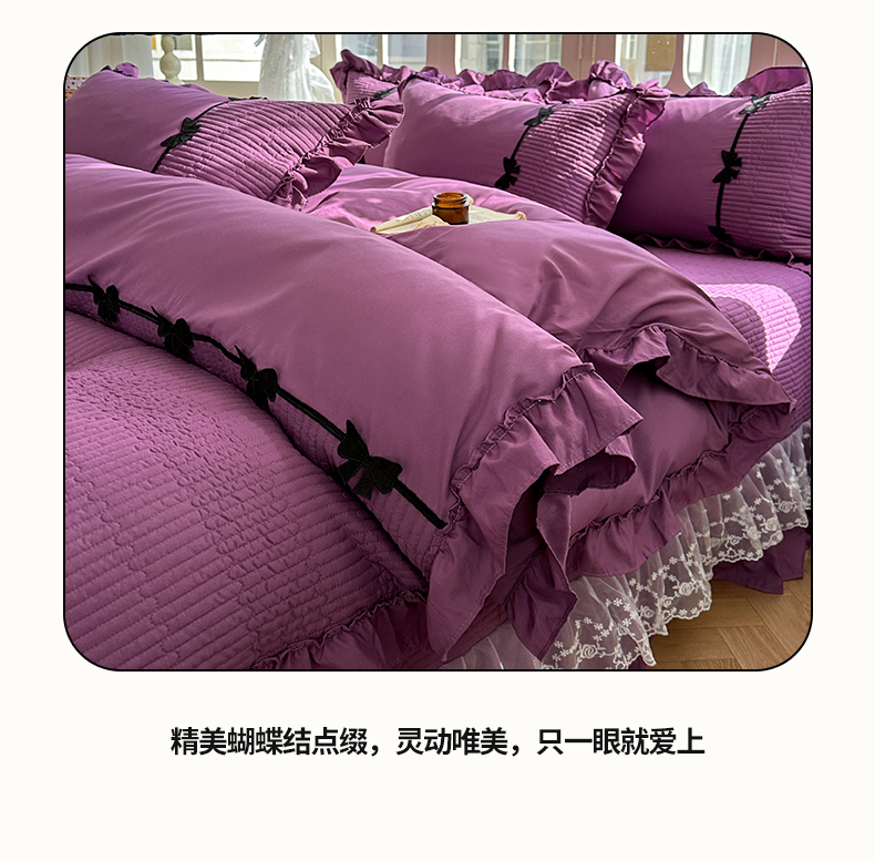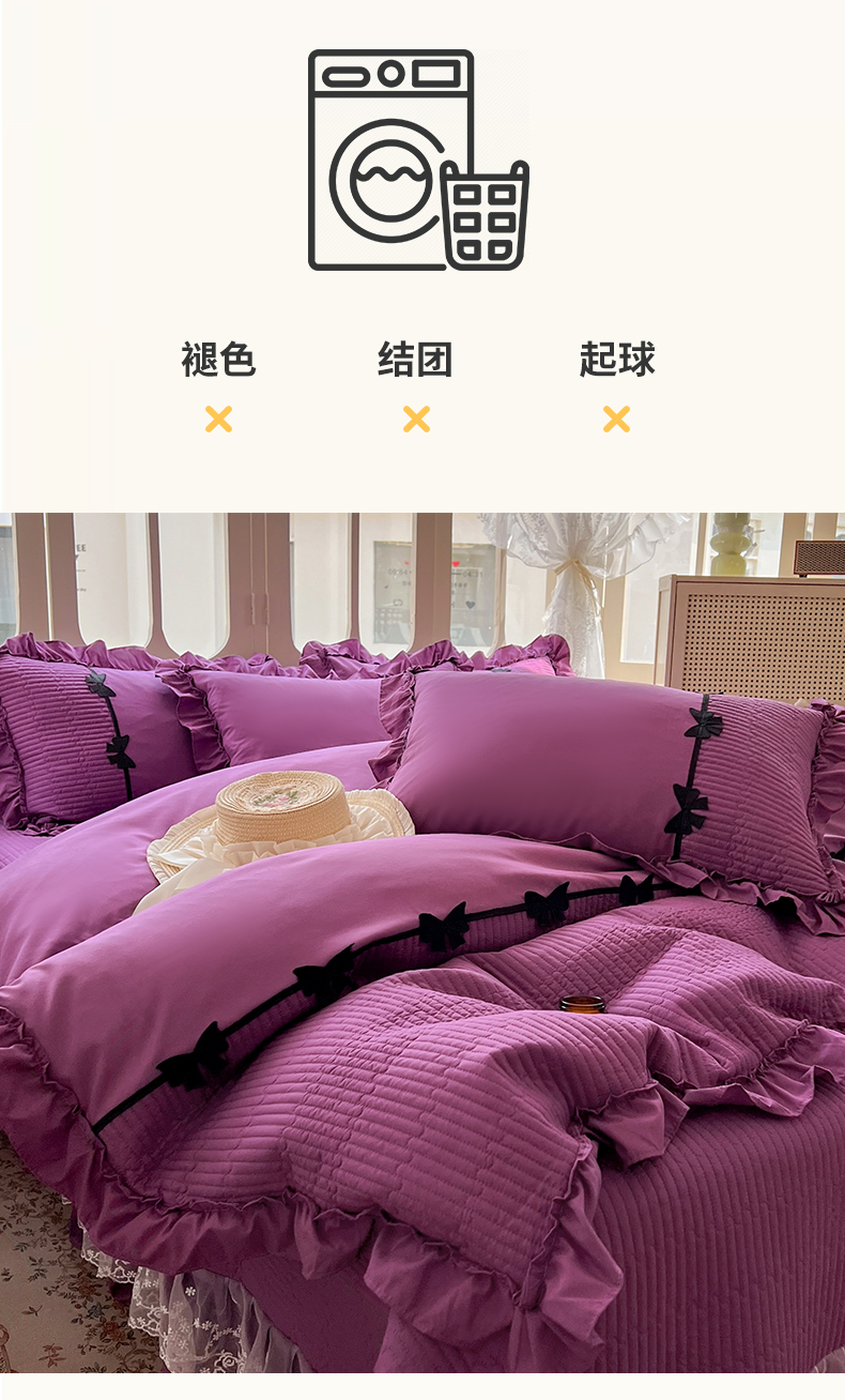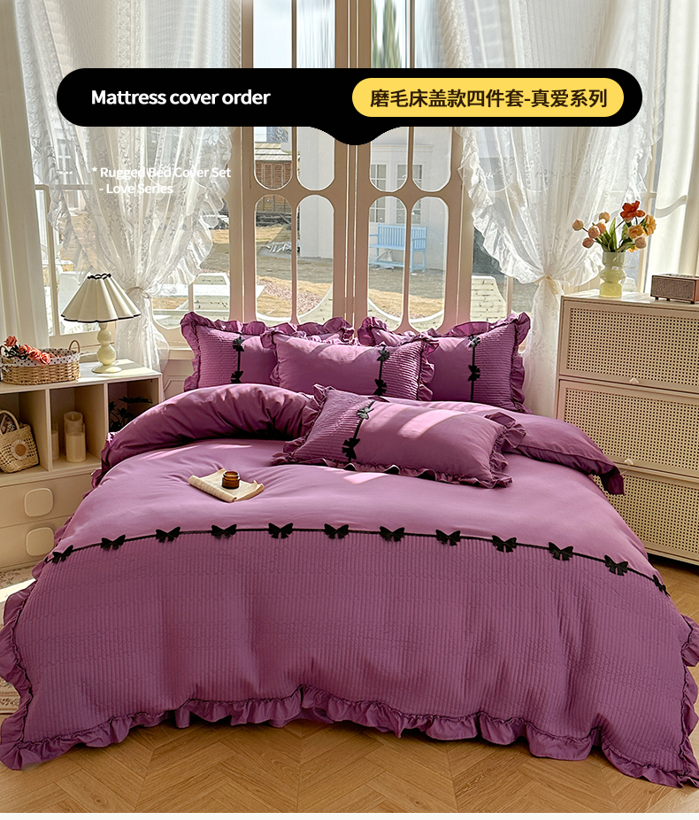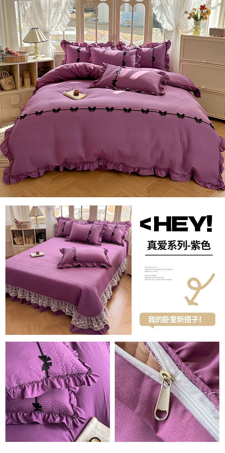 当前位置: 91家纺网 > 商品网购 > 床品套件 > 四件套 > 化纤活性四件套 > 芭比蔓家纺 2026新款床盖款四件套-真爱系列 床盖款真爱系列-紫色