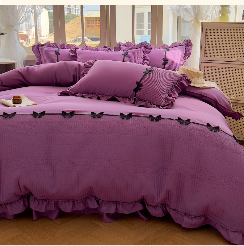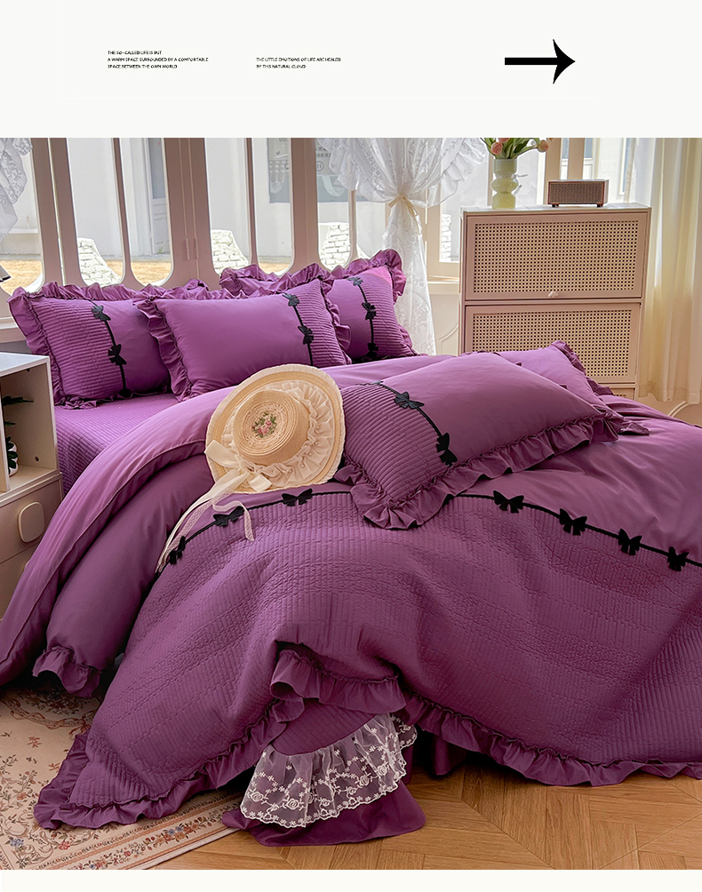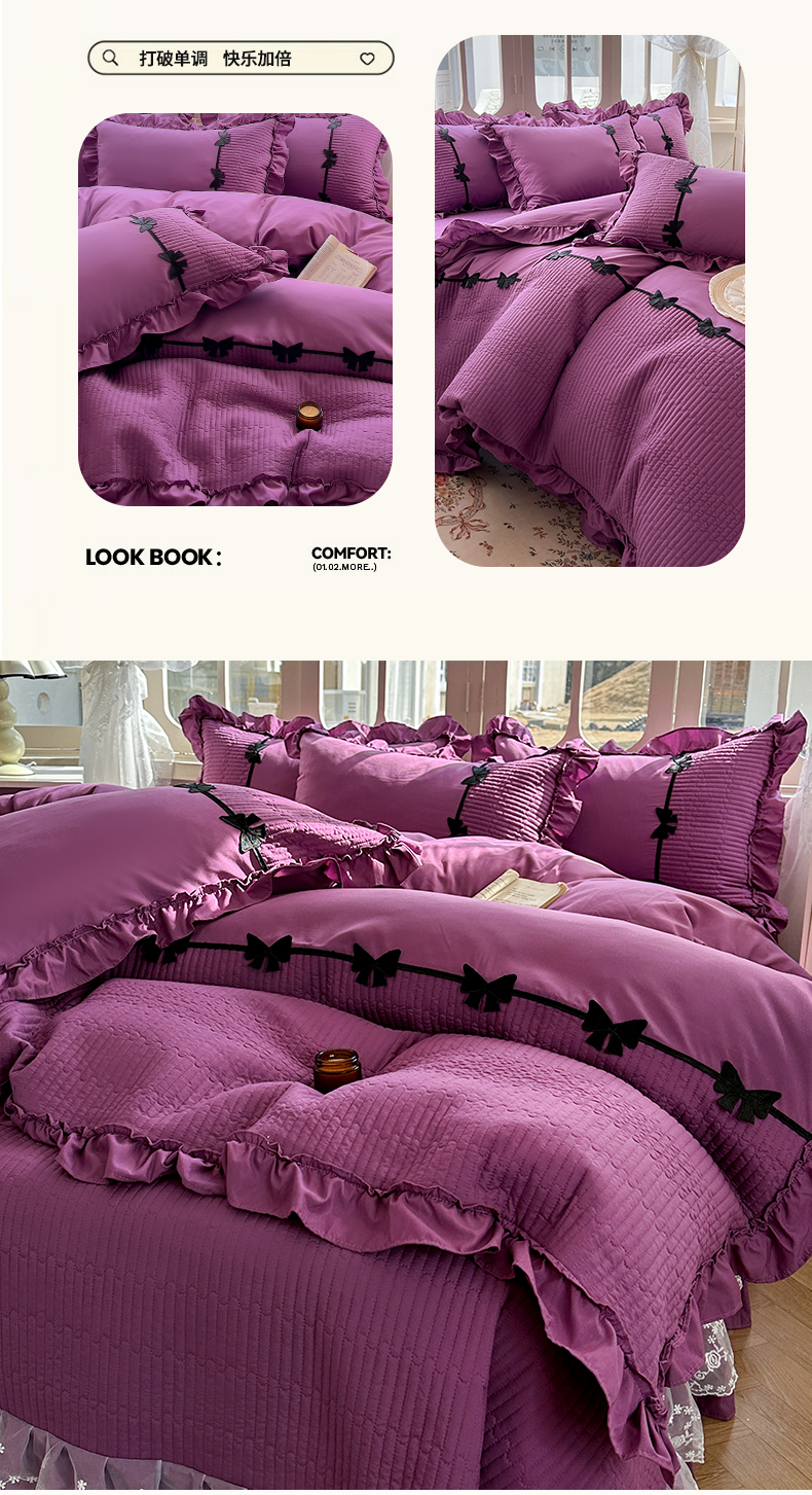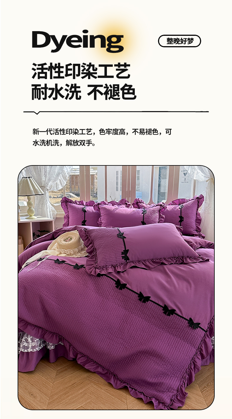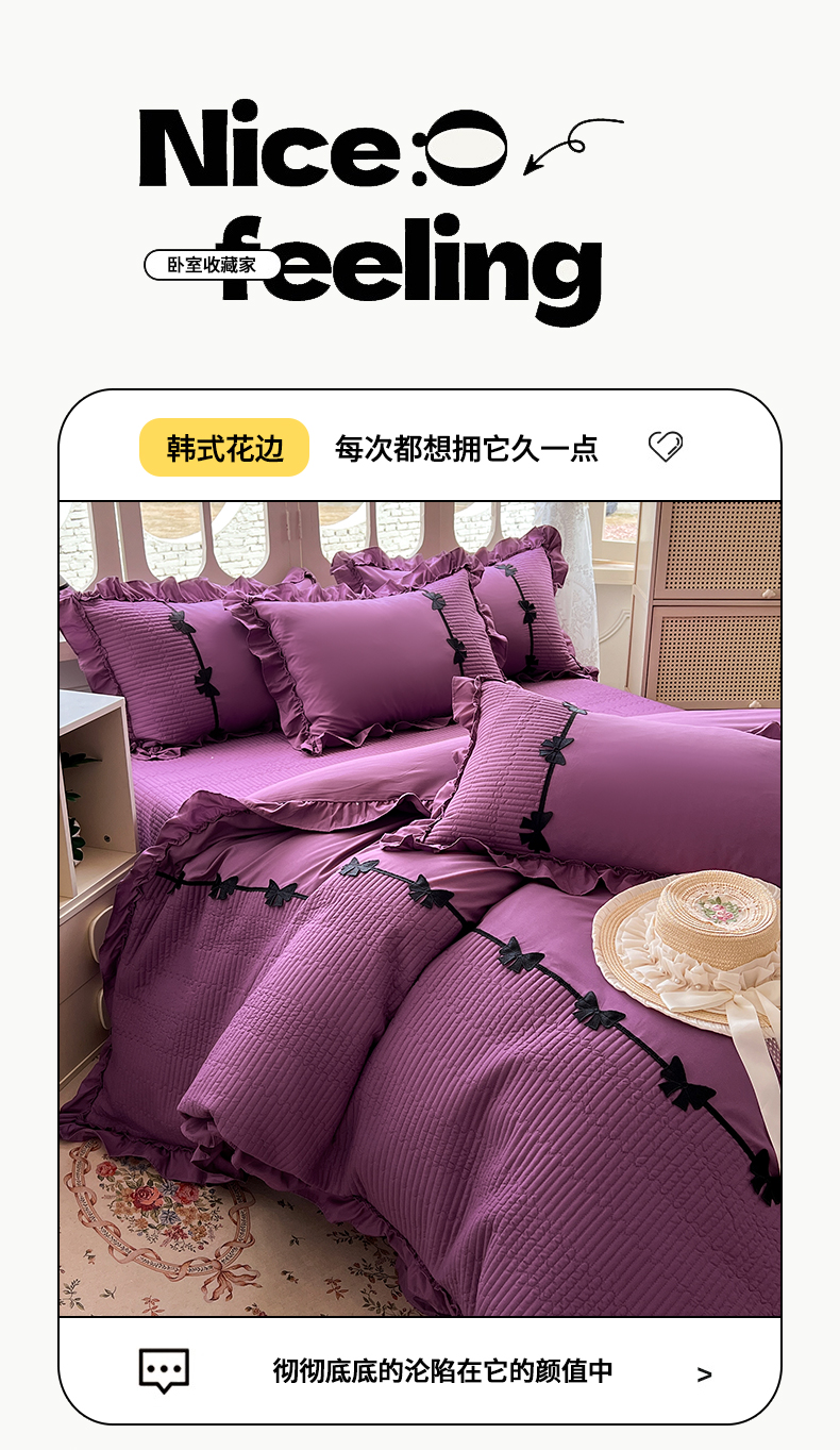当前位置: 91家纺网 > 商品网购 > 床品套件 > 四件套 > 化纤活性四件套 > 芭比蔓家纺 2026新款床盖款四件套-真爱系列 床盖款真爱系列-紫色