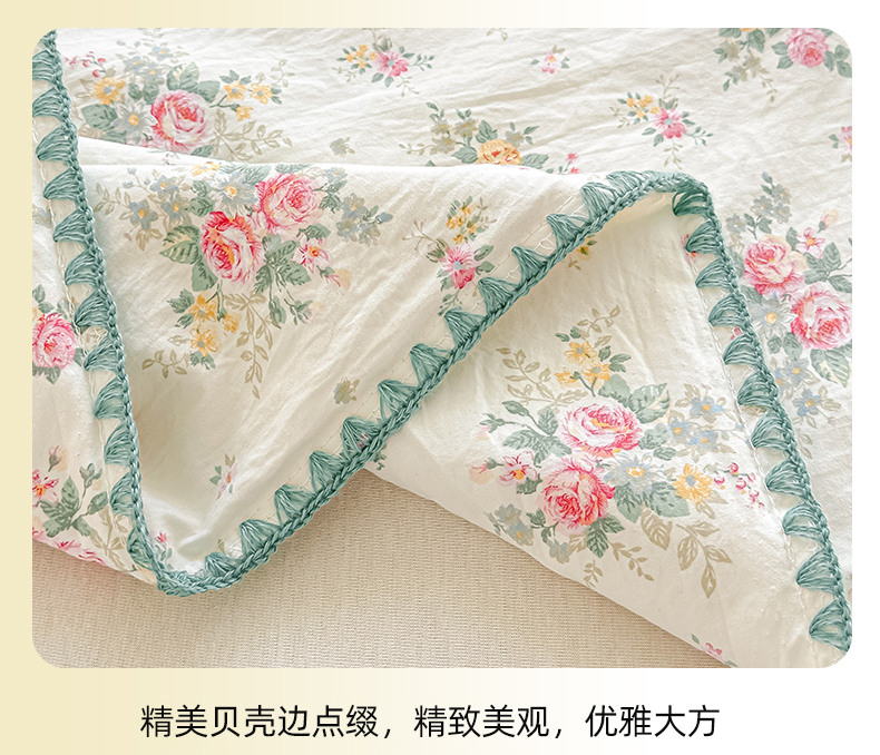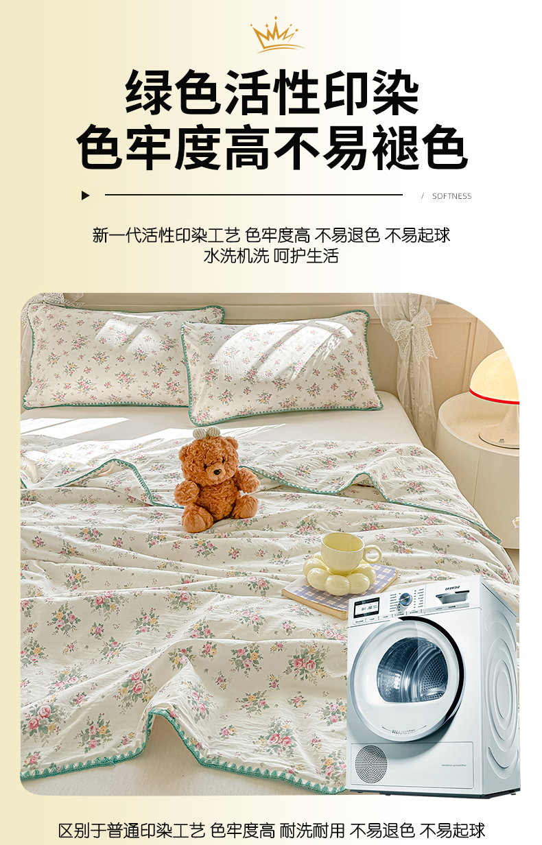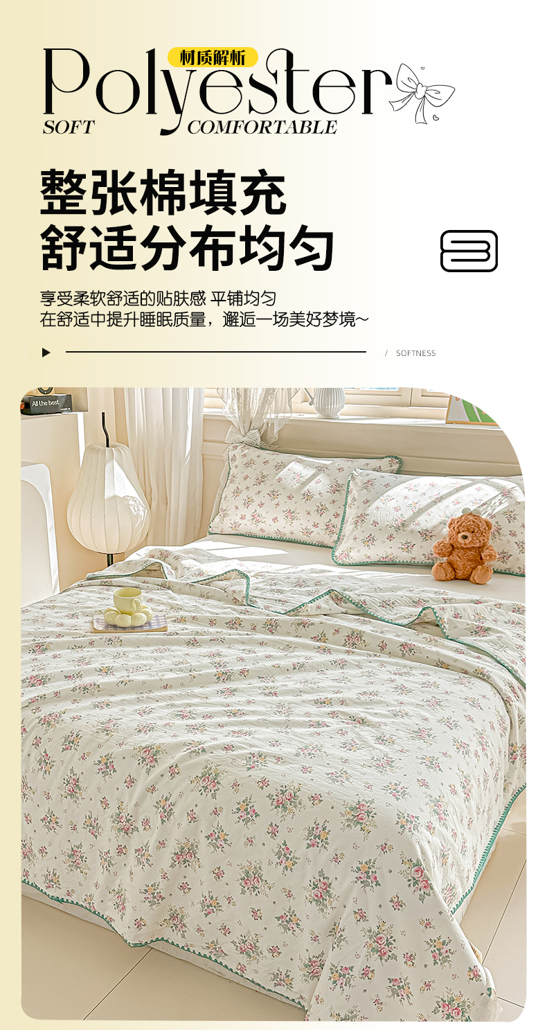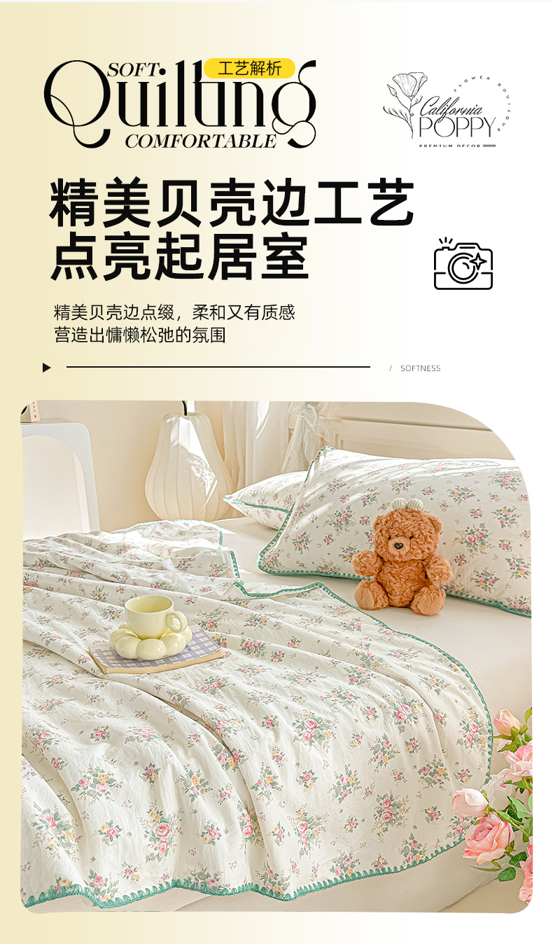 圣尔雅家纺 2026新款印花夏被小碎花贝壳绣皱皱棉夏凉被空调被 有杏