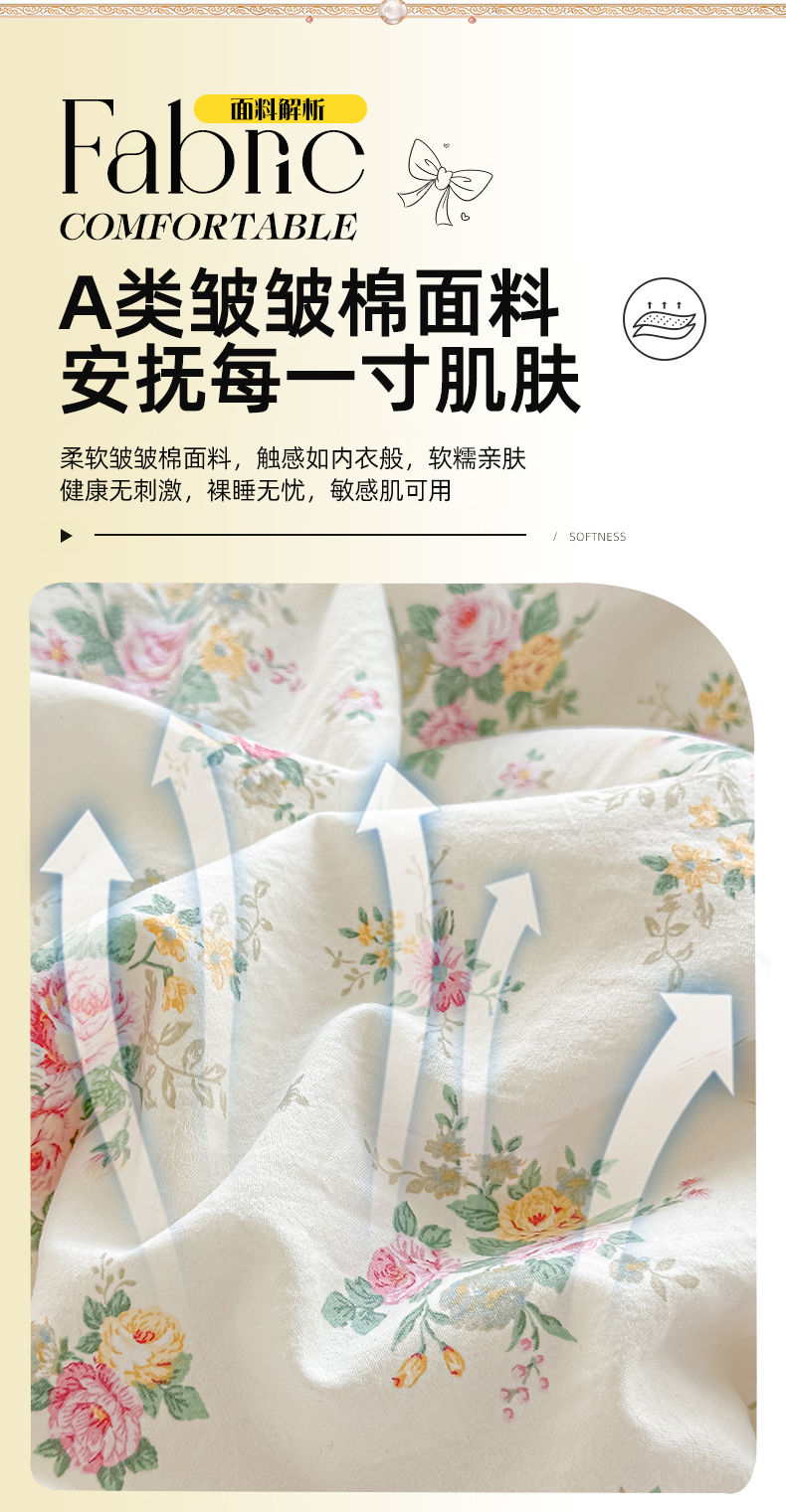 商品名称:圣尔雅家纺 2026新款印花夏被小碎花贝壳绣皱皱棉夏凉被空调被 有杏