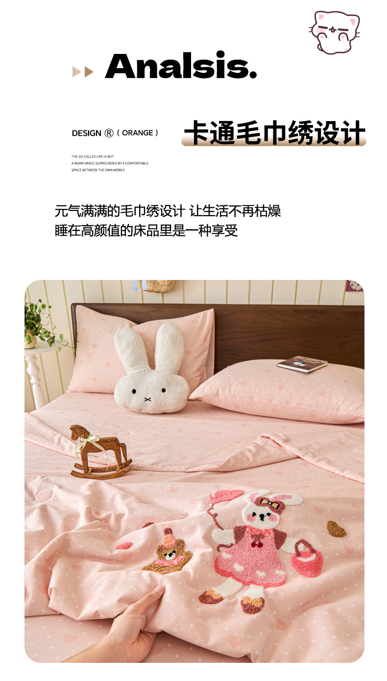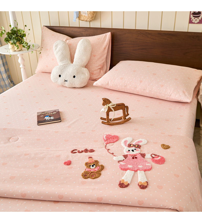 倾慕家纺 2026新款全棉卡通毛巾绣系列夏被 夏被兔兔熊