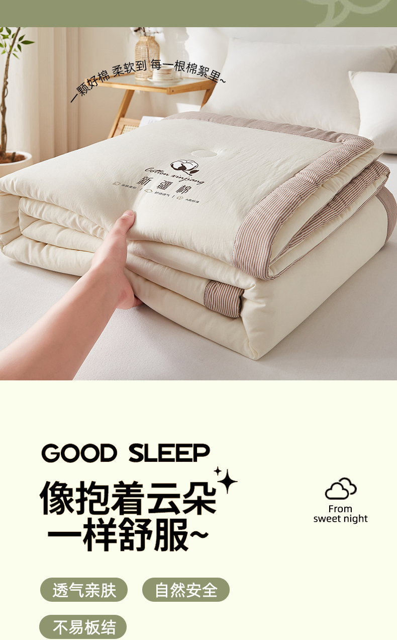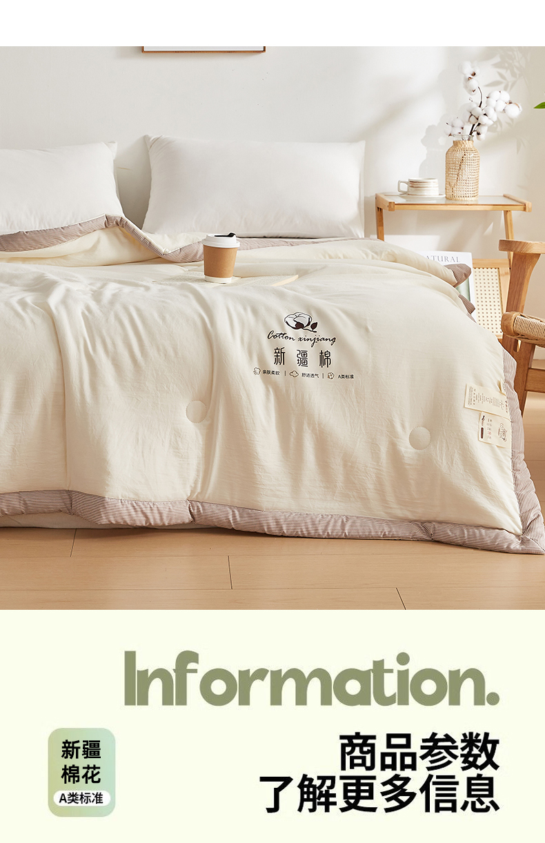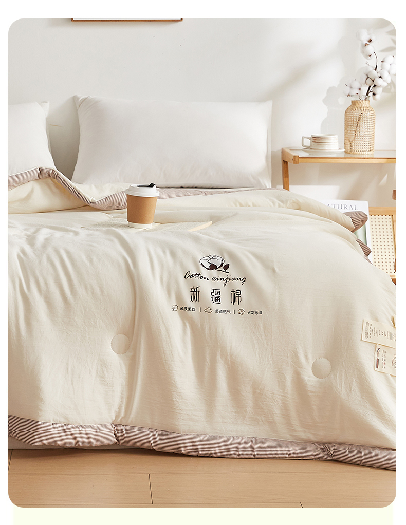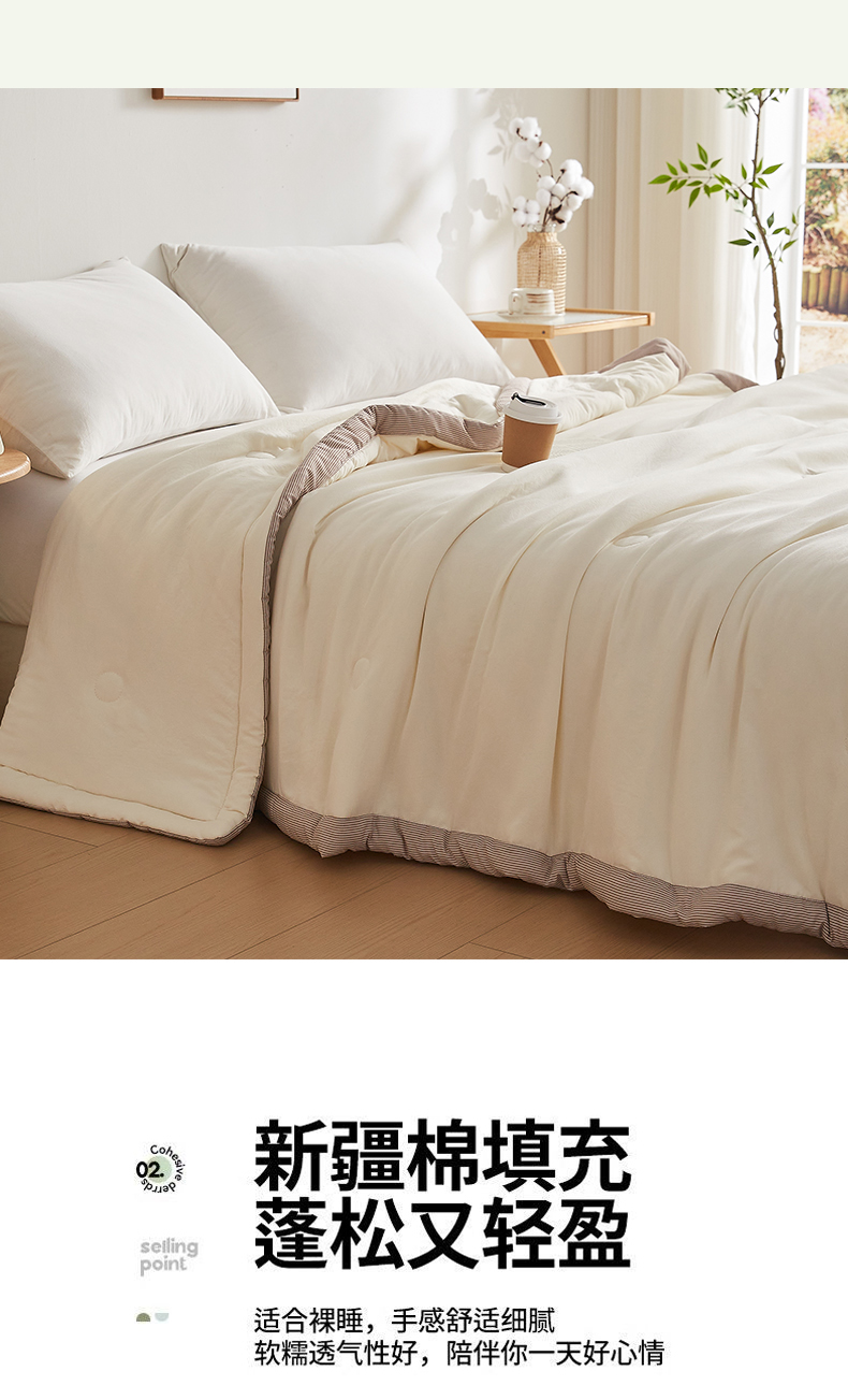 (总)帕芬鸟家纺 2025新款51%立体款棉花被 被子被芯,白咖条,灰卡条,卡其,美人玉,星空蓝