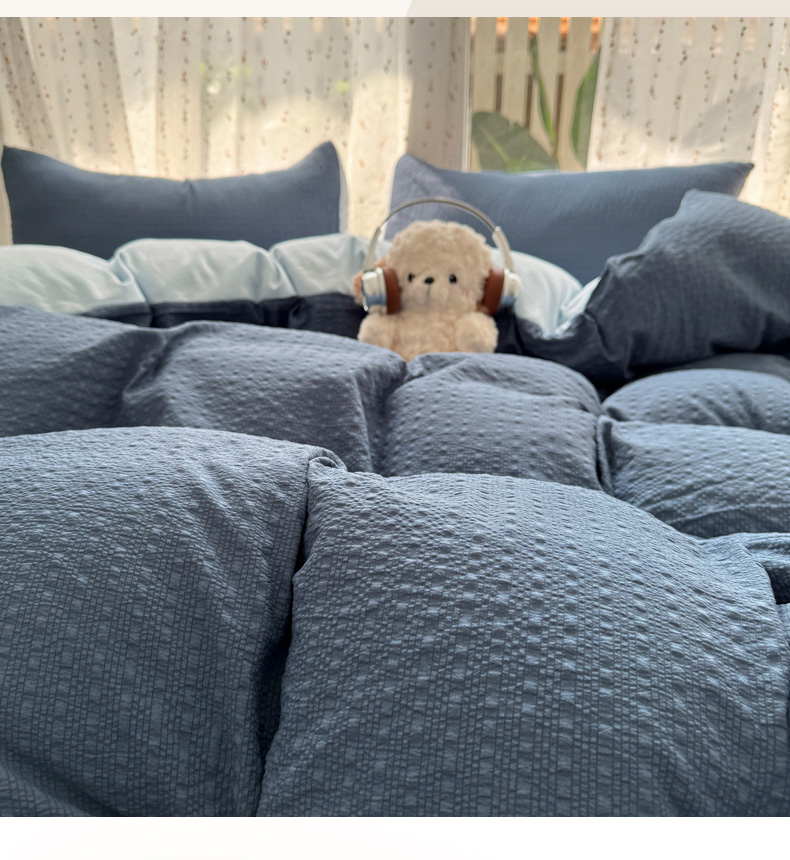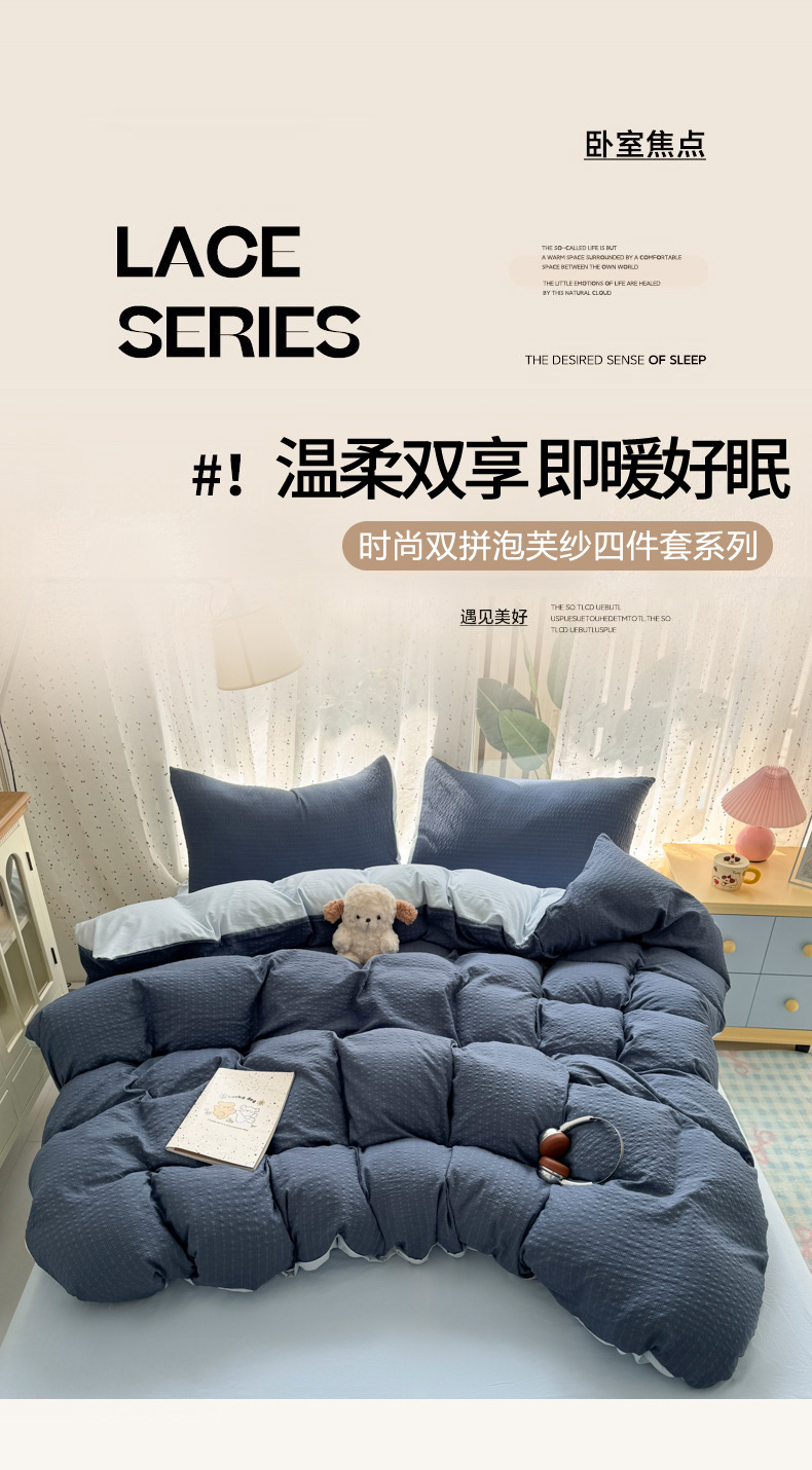 当前位置: 91家纺网 > 商品网购 > 床品套件 > 四件套 > 其它四件套 > 雨帆家纺 2026新款时尚双拼泡芙纱四件套系列 泡芙纱粉+粉