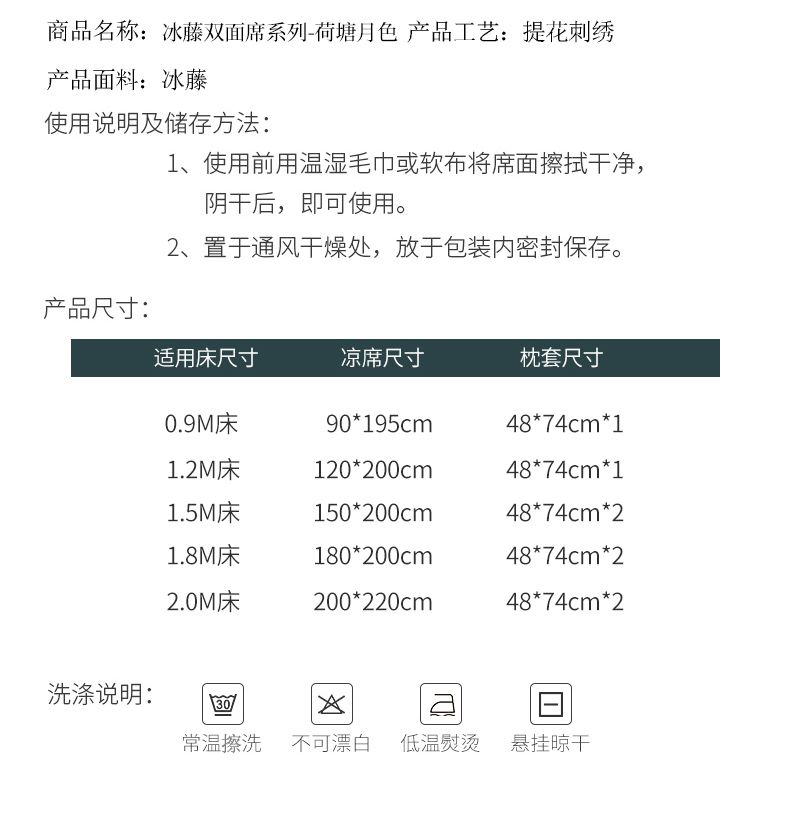 商品名称:娜朵家纺 2026新款荷塘月色冰藤双面席-床席款 荷塘月色-冰藤浅粉