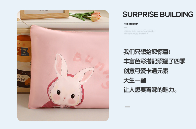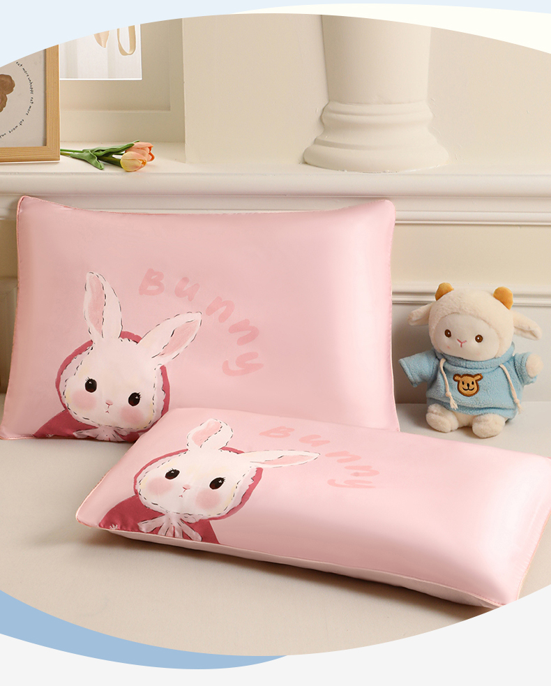 商品名称:兄弟坊 2026新款A类60支莱赛尔数码印花天丝枕套儿童枕套幼儿园枕套单枕套枕套单件 甜心兔宝