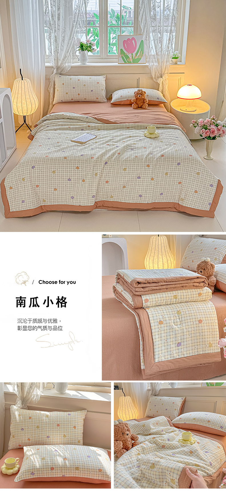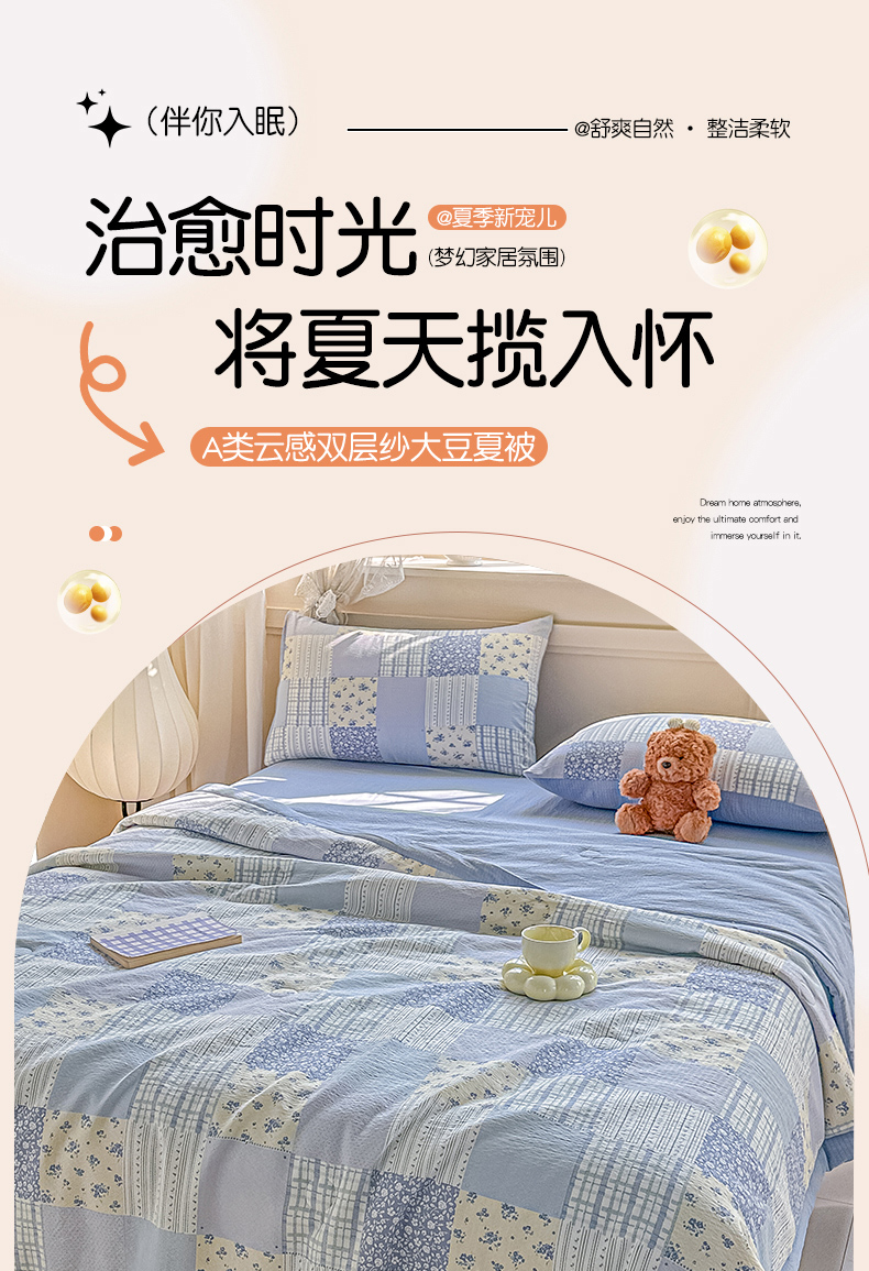 (总)秋泽家纺 2026新款A类云感双层纱大豆纤维夏凉被空调被小清新印花夏被,百福田园,花漾KT,蓝境兔语,绿境花影,美好时光,墨染春枝,奶糯粉喵,南瓜小格,浅粉花信,桃心条纹,甜梦奶心,小蓝狗,治愈星仔,紫雾蔷薇,组合图仅供展示不可下单