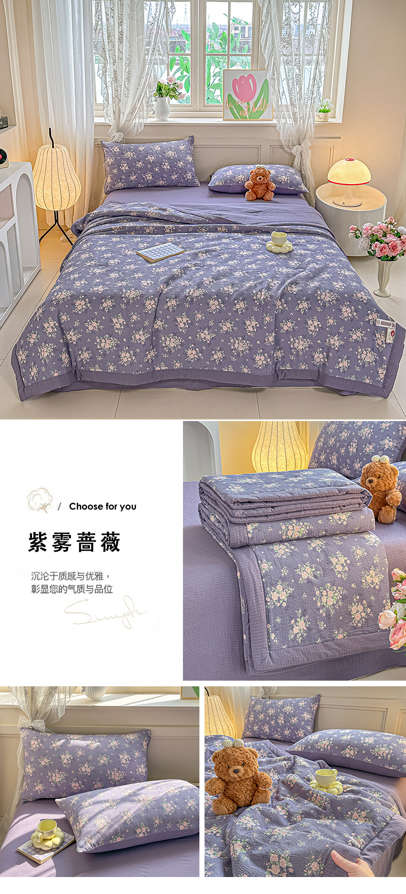 (总)秋泽家纺 2026新款A类云感双层纱大豆纤维夏凉被空调被小清新印花夏被,百福田园,花漾KT,蓝境兔语,绿境花影,美好时光,墨染春枝,奶糯粉喵,南瓜小格,浅粉花信,桃心条纹,甜梦奶心,小蓝狗,治愈星仔,紫雾蔷薇,组合图仅供展示不可下单