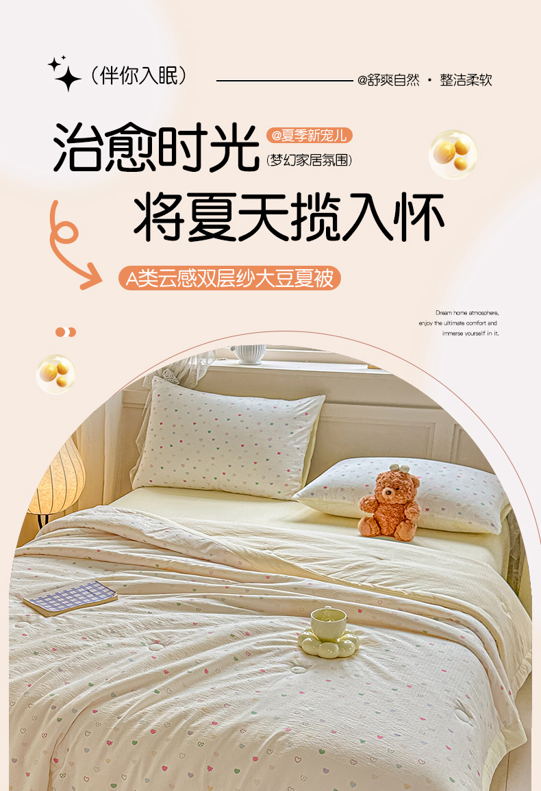商品名称:秋泽家纺 2026新款A类云感双层纱大豆纤维夏凉被空调被小清新印花夏被 甜梦奶心