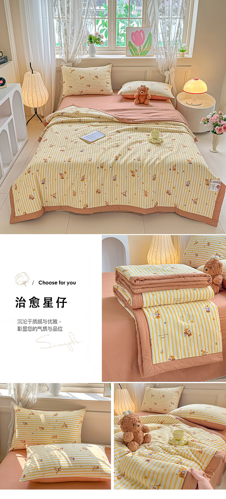 (总)秋泽家纺 2025春夏新款水洗棉双层纱大豆纤维夏被夏凉被空调被,缤纷果园,简约格韵,可爱卡皮巴拉,快乐汪汪,腊肠萌狗,浪漫花海,旅行恐龙,萌宠乐园,萌兔乐园,蘑菇乐园,汽车派对,时尚空间,KT猫猫