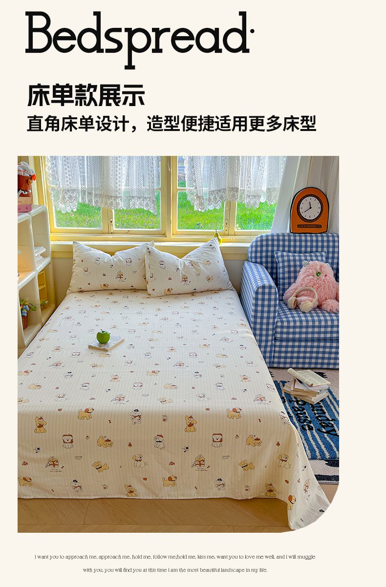简约家纺 2026新款全棉斜纹12868床笠系列 可爱萌犬