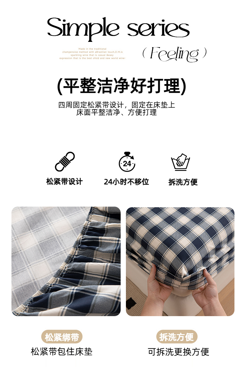 商品名称:(总)女子家纺 2026新款40支13070全棉简约格子系列A版床笠