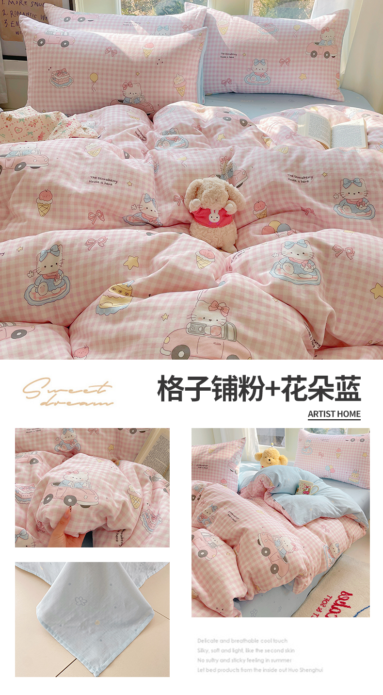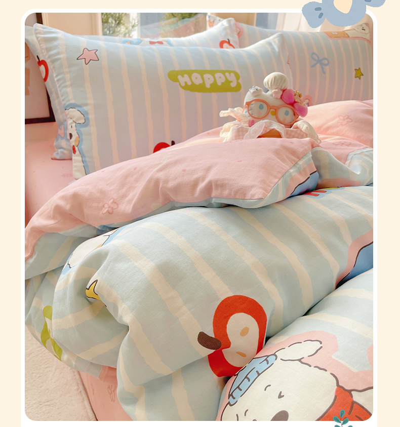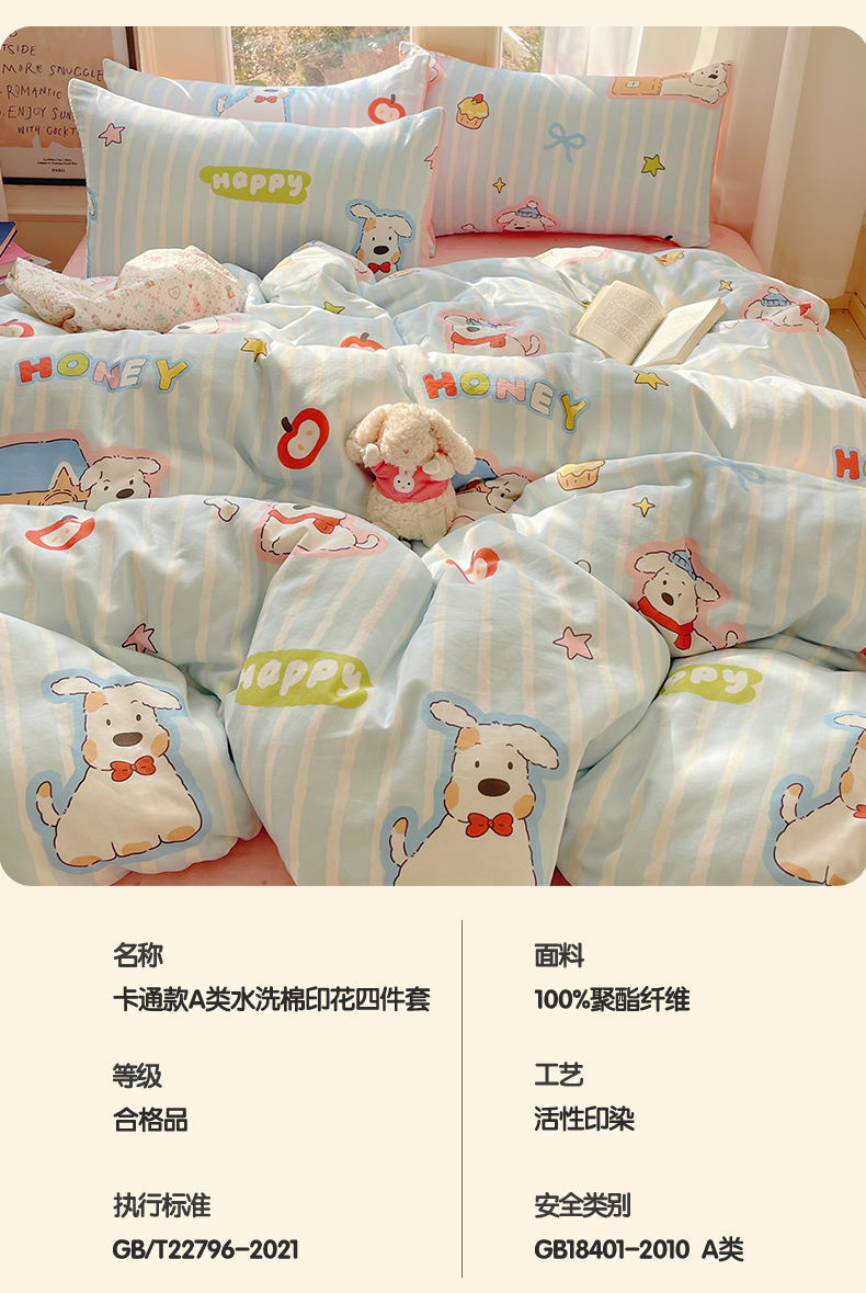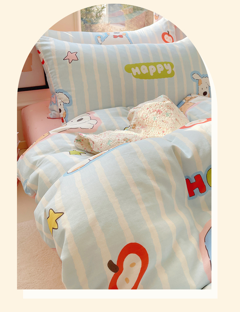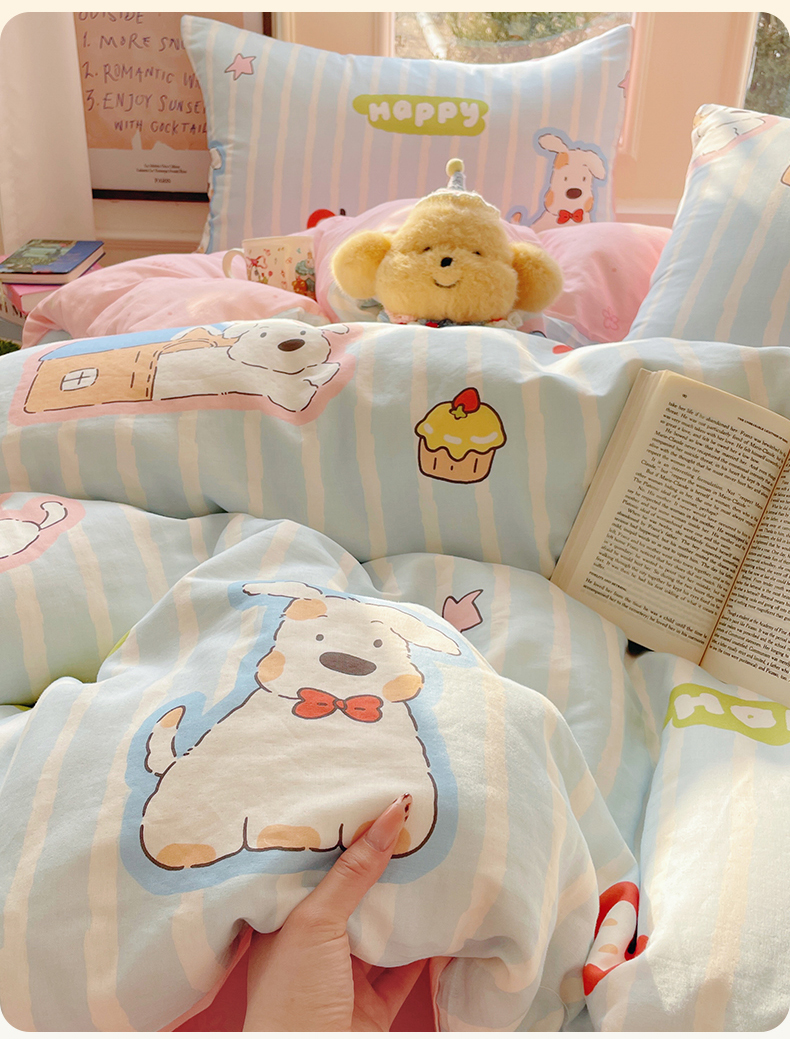 当前位置: 91家纺网 > 商品网购 > 床品套件 > 四件套 > 水洗棉四件套 > 盛秋家纺 2026新款卡通款A类水洗棉印花四件套 软萌汪汪蓝+花朵粉