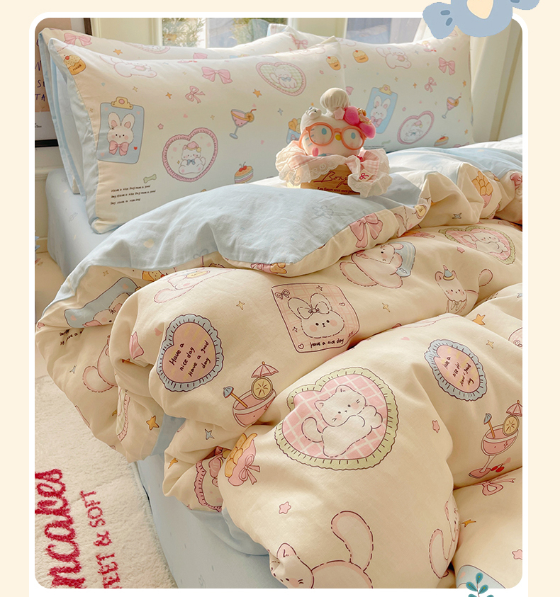 盛秋家纺 2026新款A类水洗棉豆豆夏被系列 甜茶日记+奶油粉,甜茶日记+奶油粉