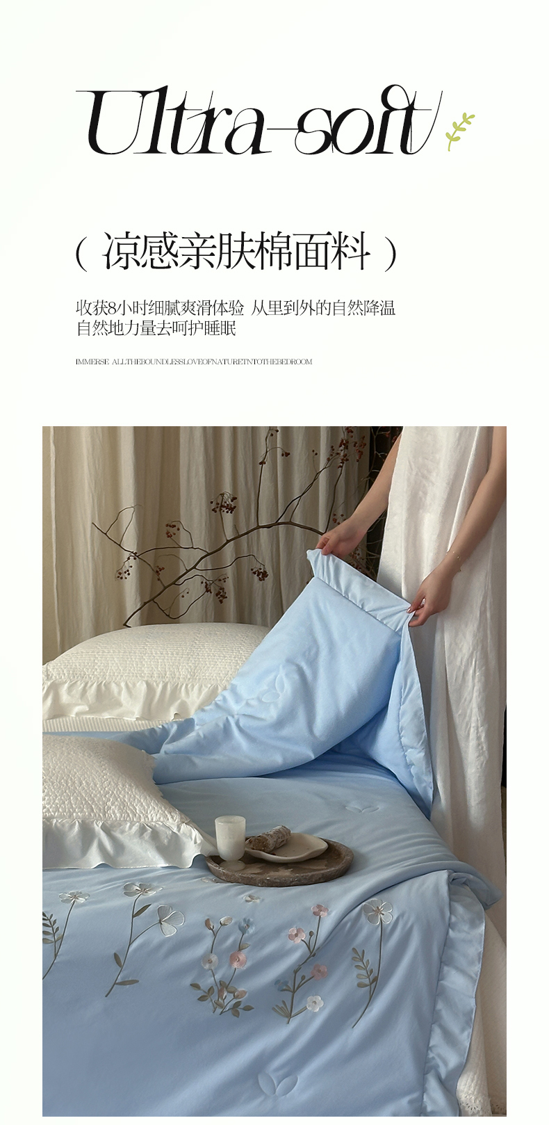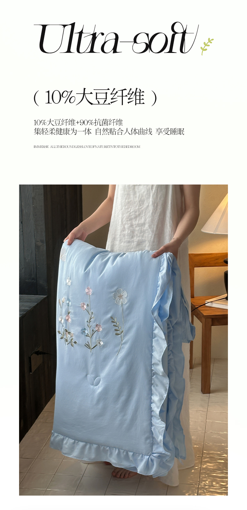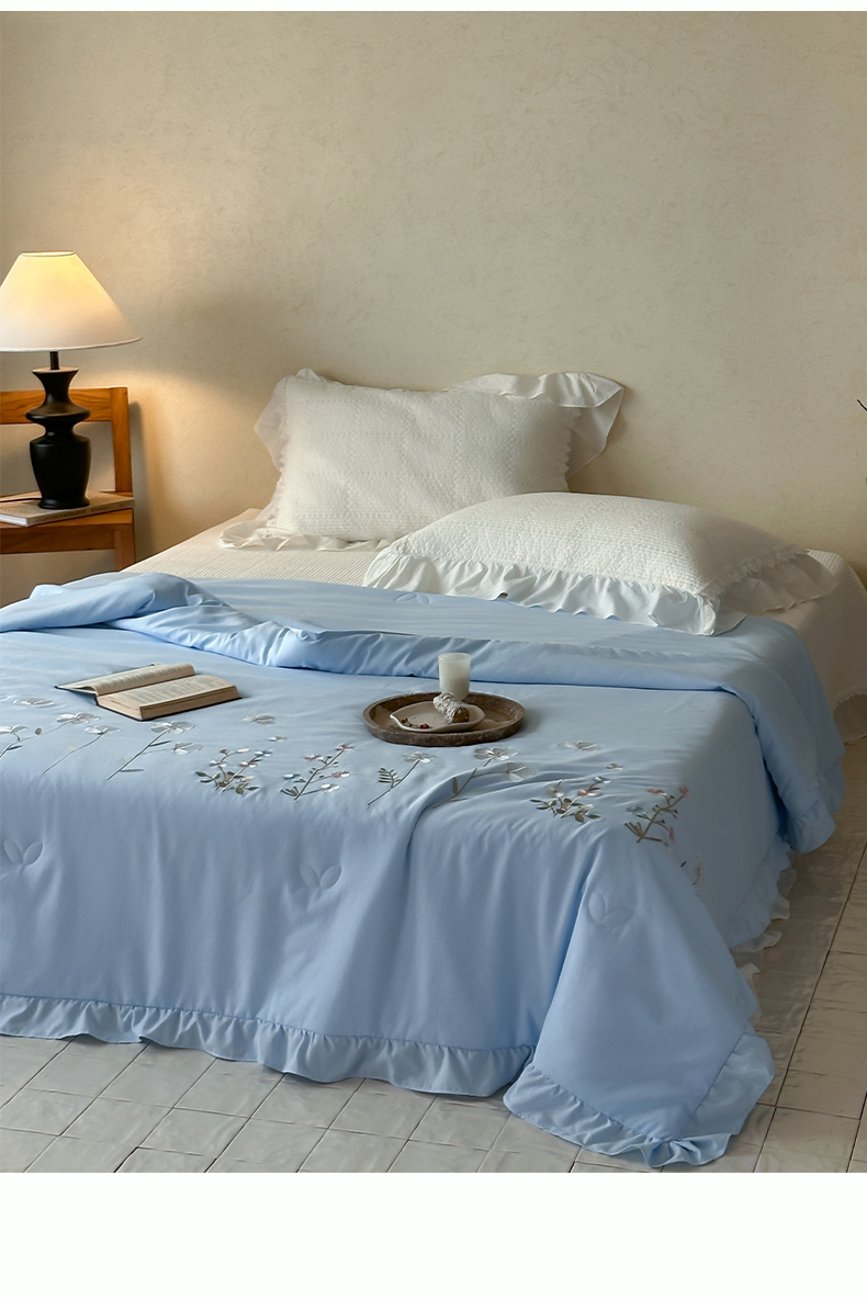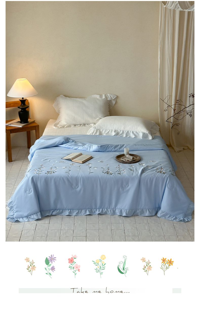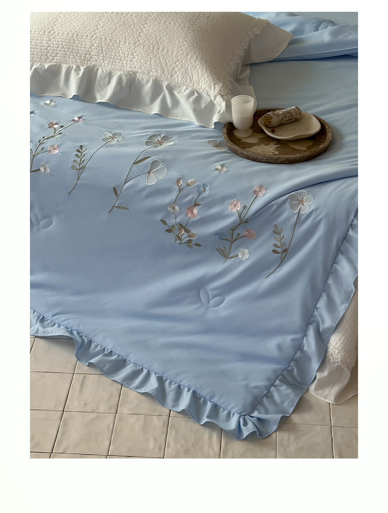 商品名称:一加一 2026新款亲肤凉感花边绣花大豆夏被夏凉被空调被四件套-花间序 花间序-蓝