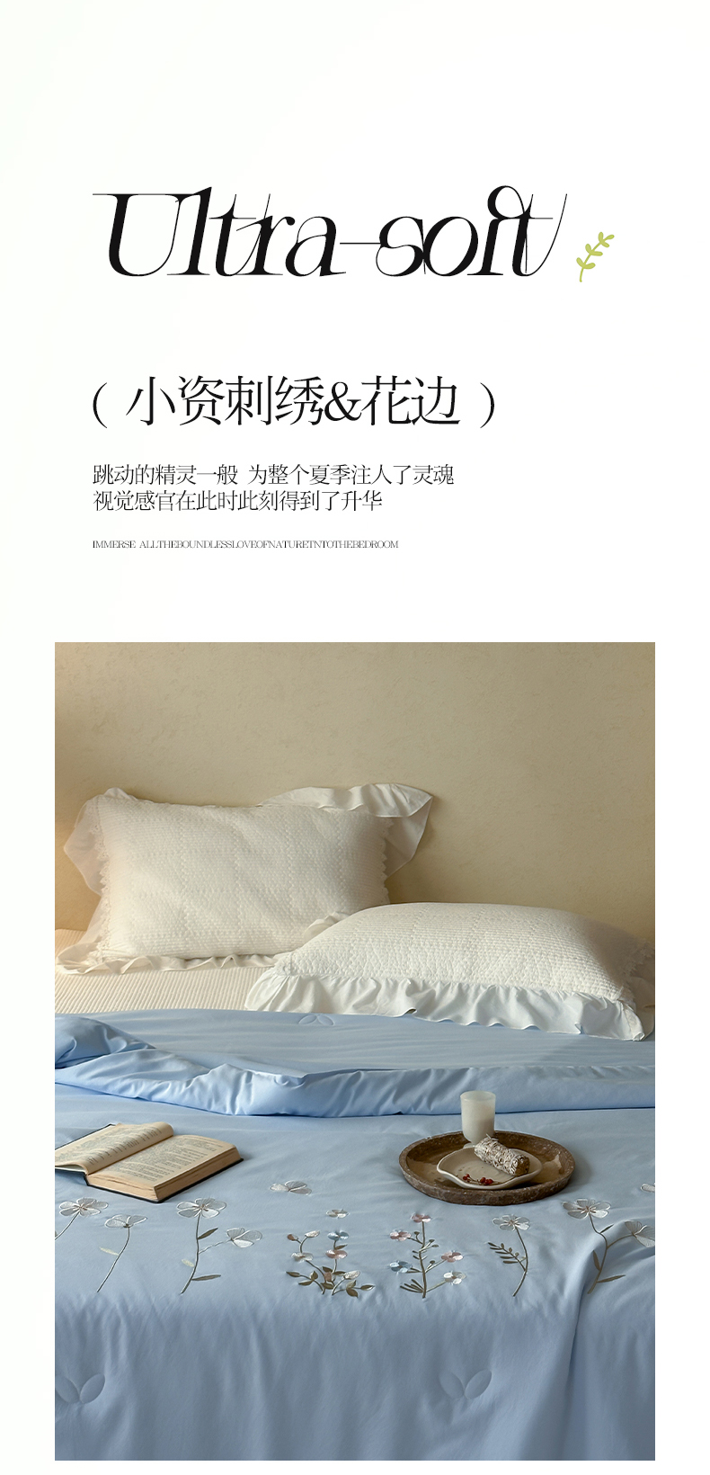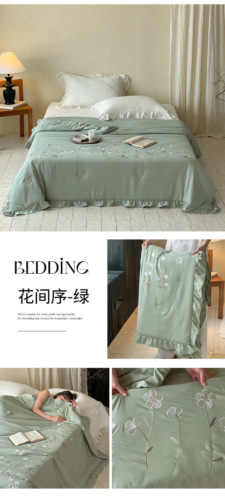 (总)一加一 2026新款亲肤凉感花边绣花大豆夏被夏凉被空调被四件套-花间序,花间序-粉,花间序-蓝,花间序-绿,花间序-米