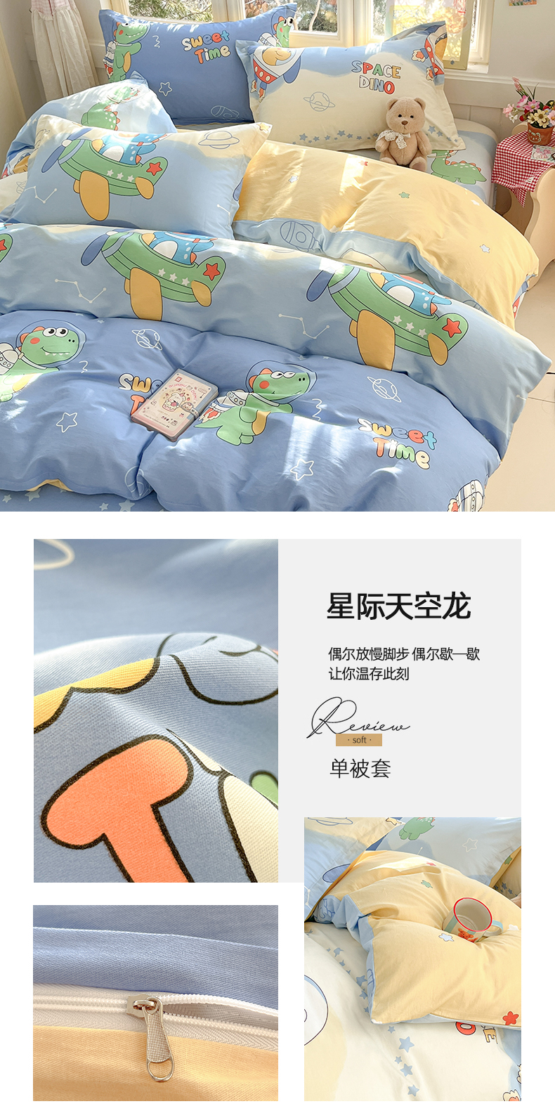 莱通家纺 2026春夏新款12868全棉印花四件套单品系列二-单被套提供买家秀,预留缩水率) 星际天空龙