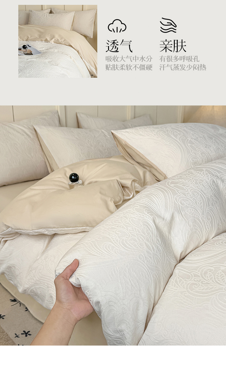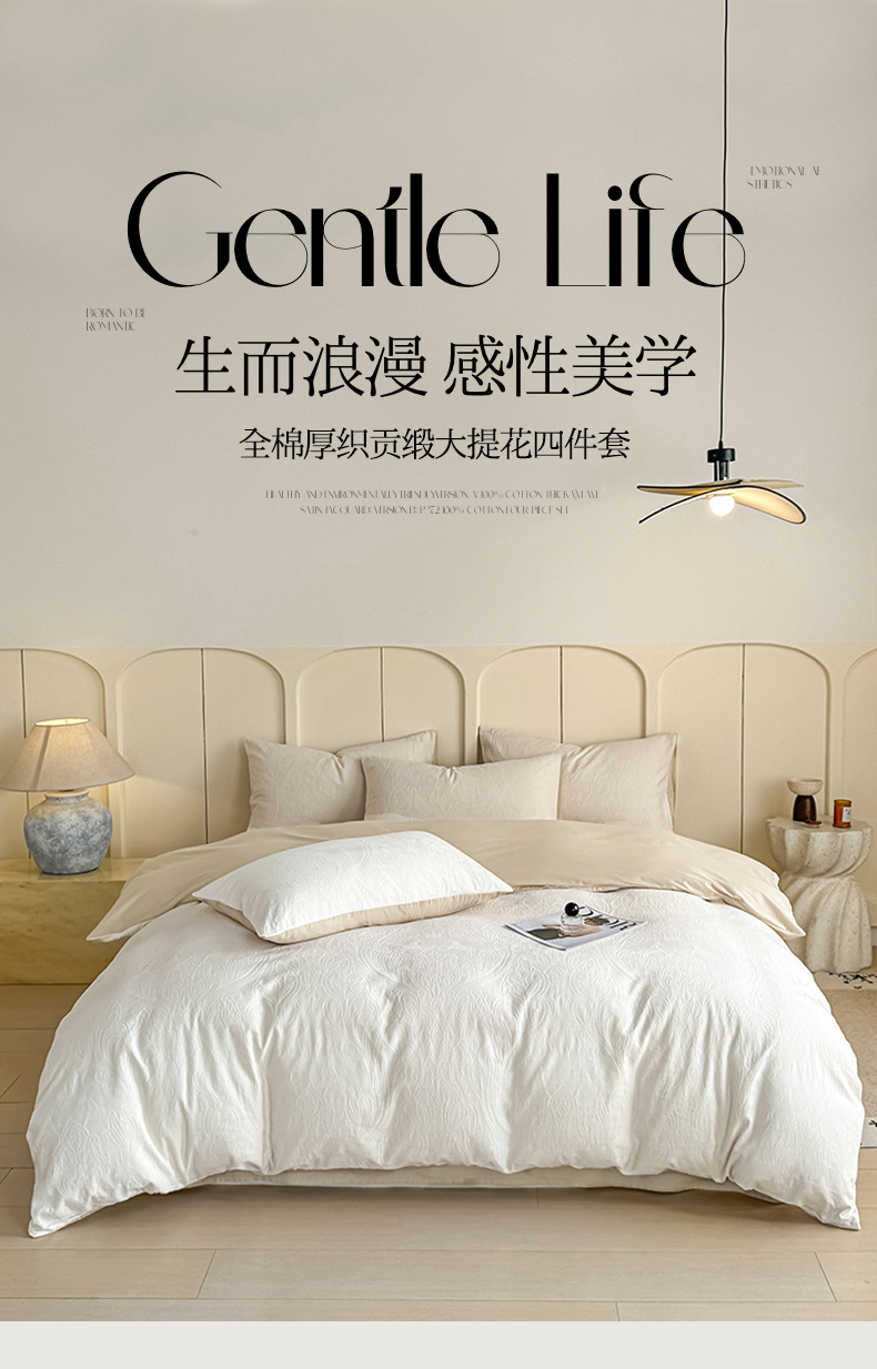 当前位置: 91家纺网 > 商品网购 > 床品套件 > 四件套 > 全棉普通四件套 > 灰鲸 2026新款全棉纯棉厚织贡缎大提花四件套 珀伽索斯-杏仁奶霜