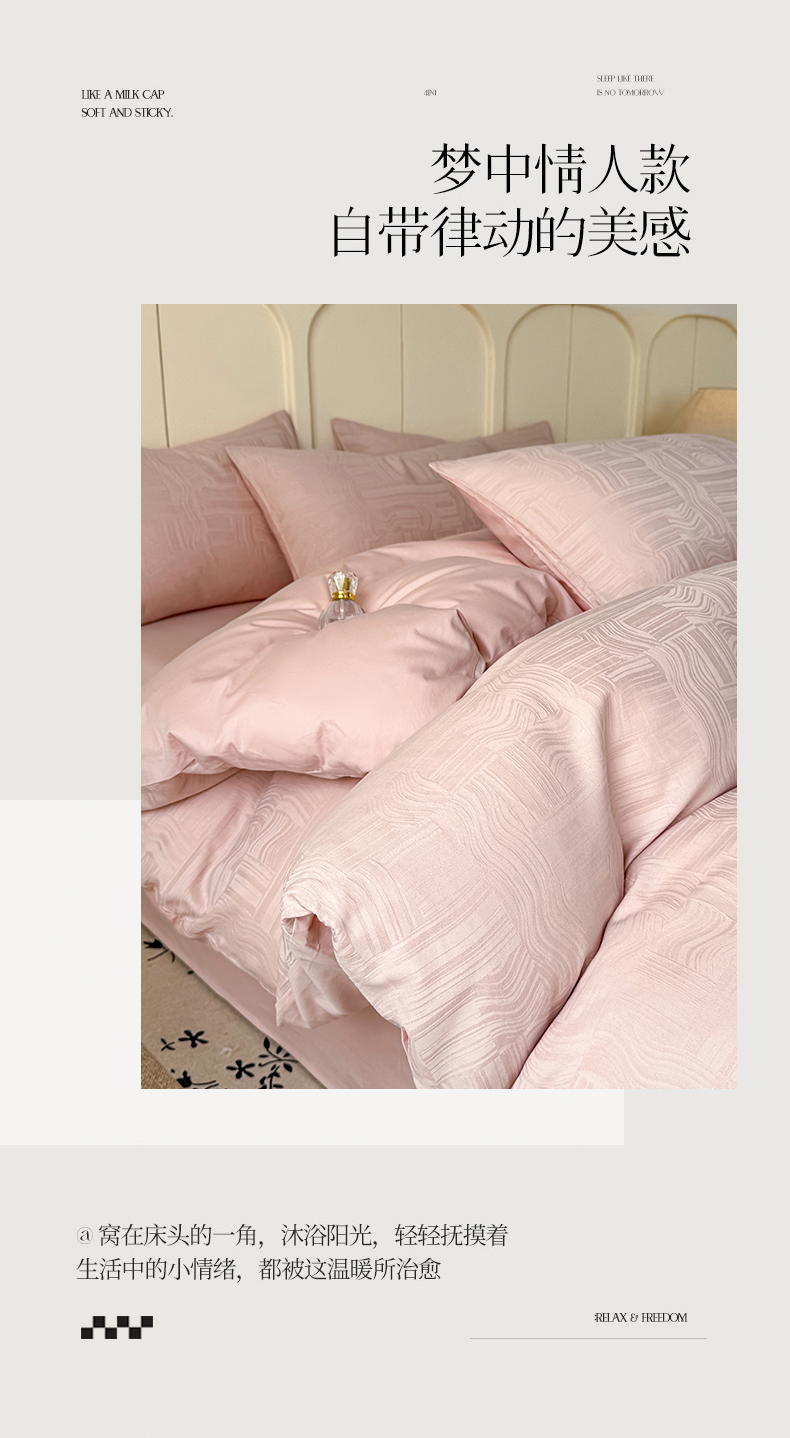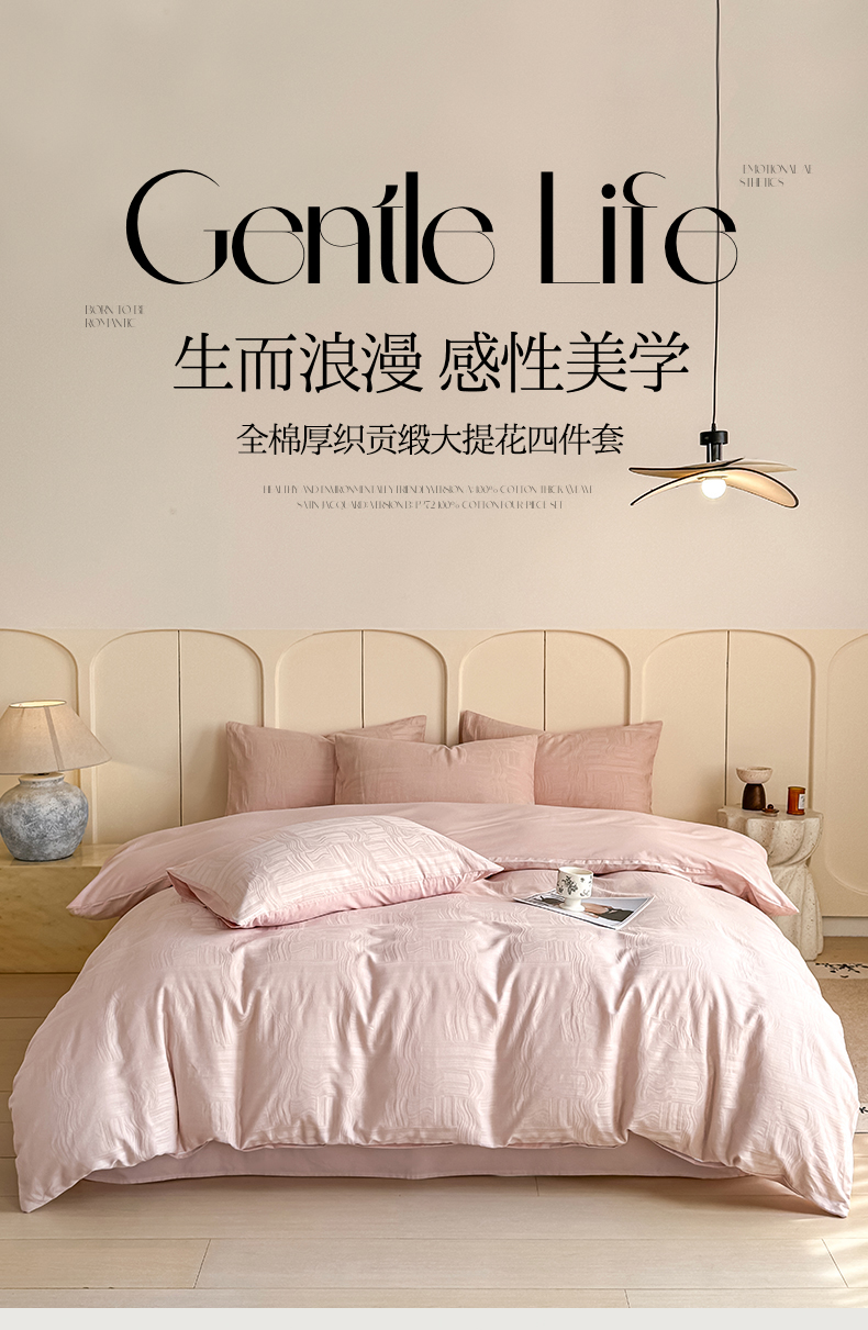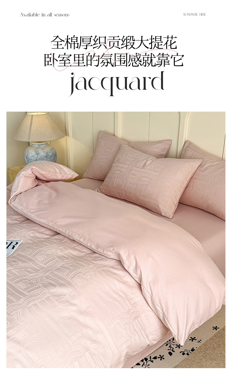 当前位置: 91家纺网 > 商品网购 > 床品套件 > 四件套 > 全棉普通四件套 > 灰鲸 2026新款全棉纯棉厚织贡缎大提花四件套 凡汐-蜜春粉
