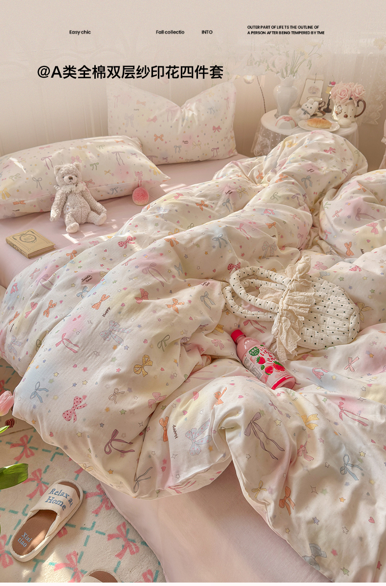 当前位置: 91家纺网 > 商品网购 > 床品套件 > 四件套 > 全棉普通四件套 > 名兮家居 2026春夏新款全棉纯棉A类双层纱四件套 双层纱-碎星蝶舞