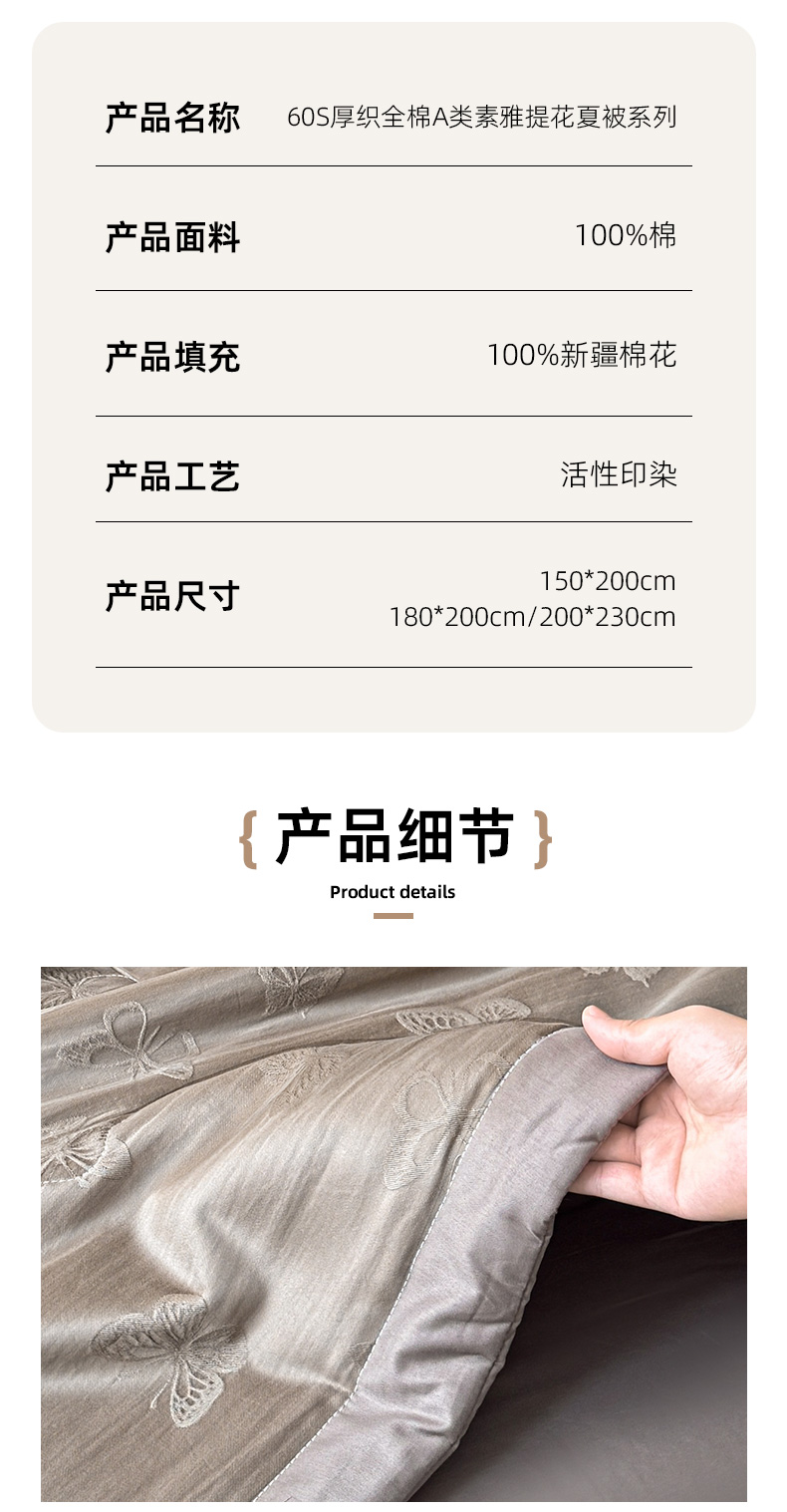 • 适用季节: 空调被/夏凉被