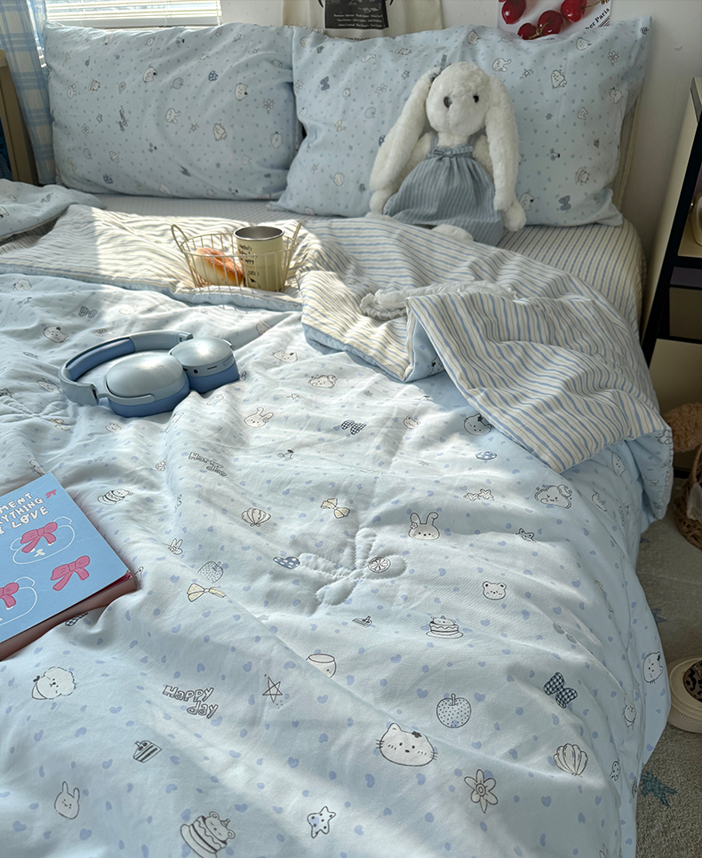 当前位置: 91家纺网 > 商品网购 > 床品套件 > 四件套 > 夏被四件套 > 原素 2026夏季A类水洗棉双层纱夏凉被四件套 小猫困困