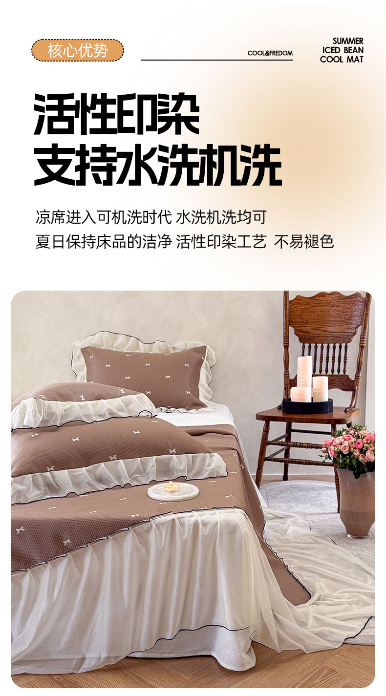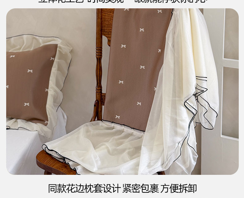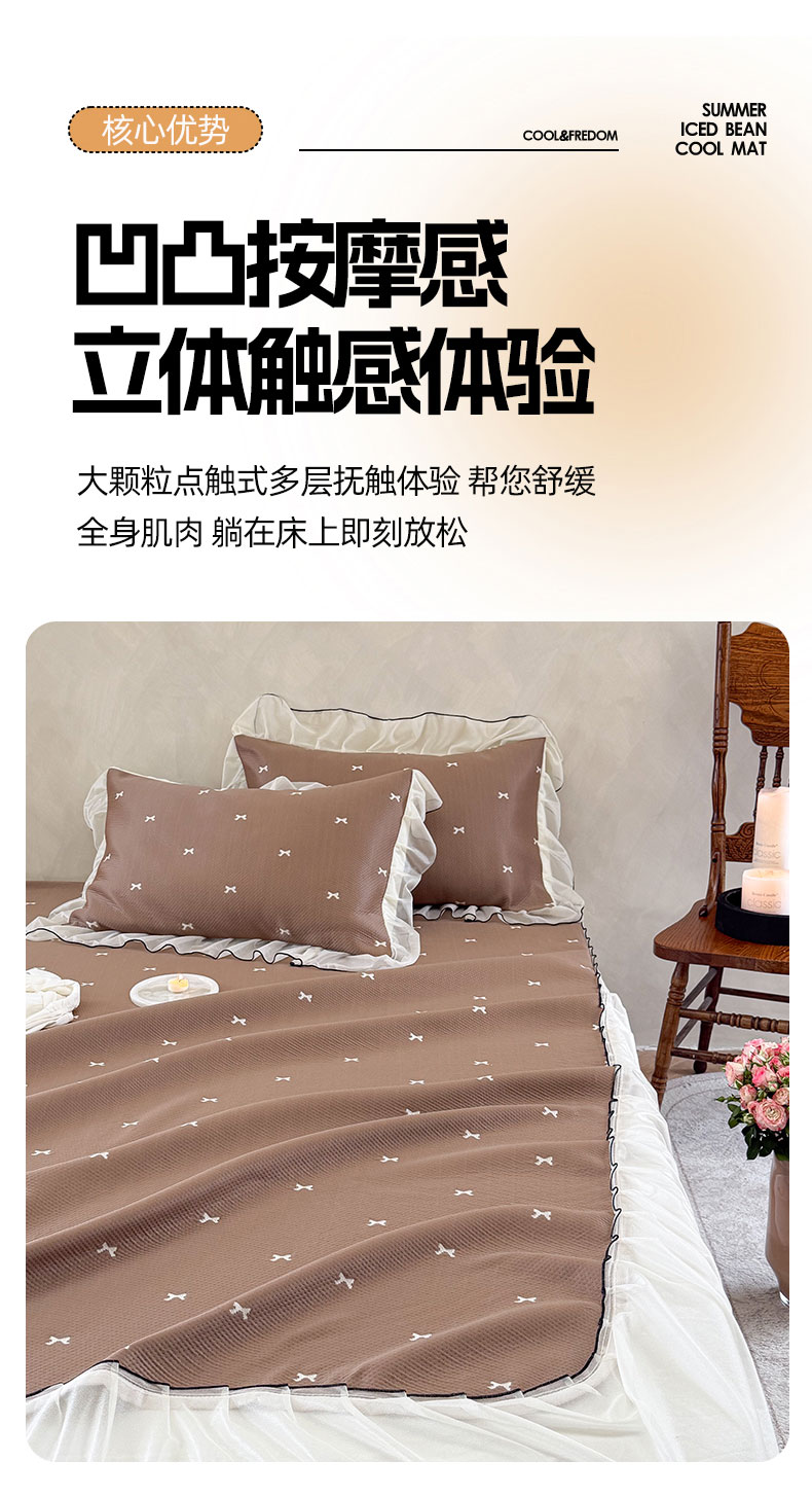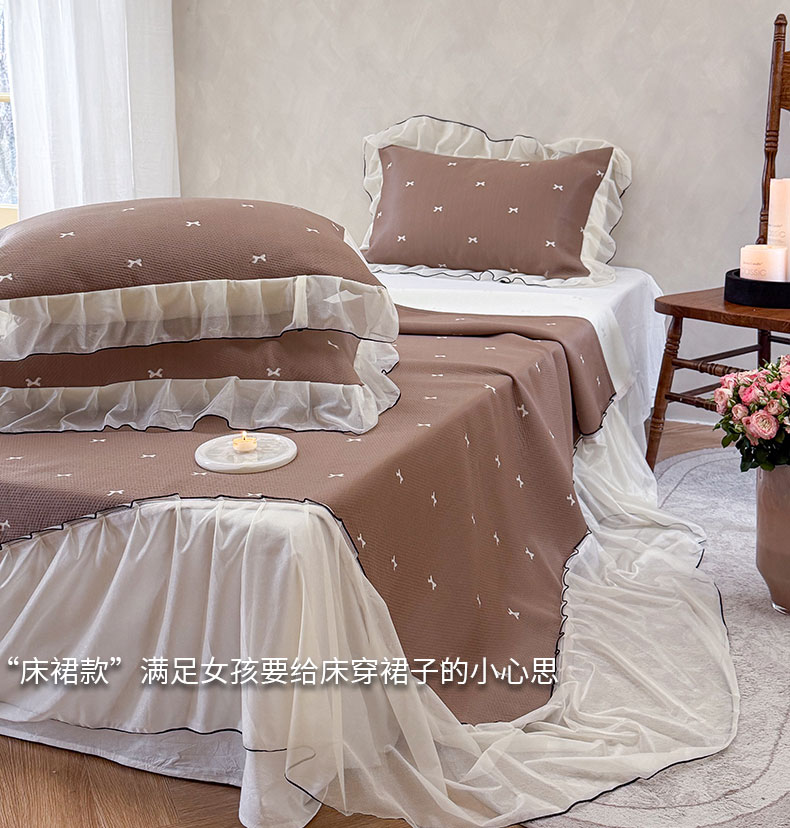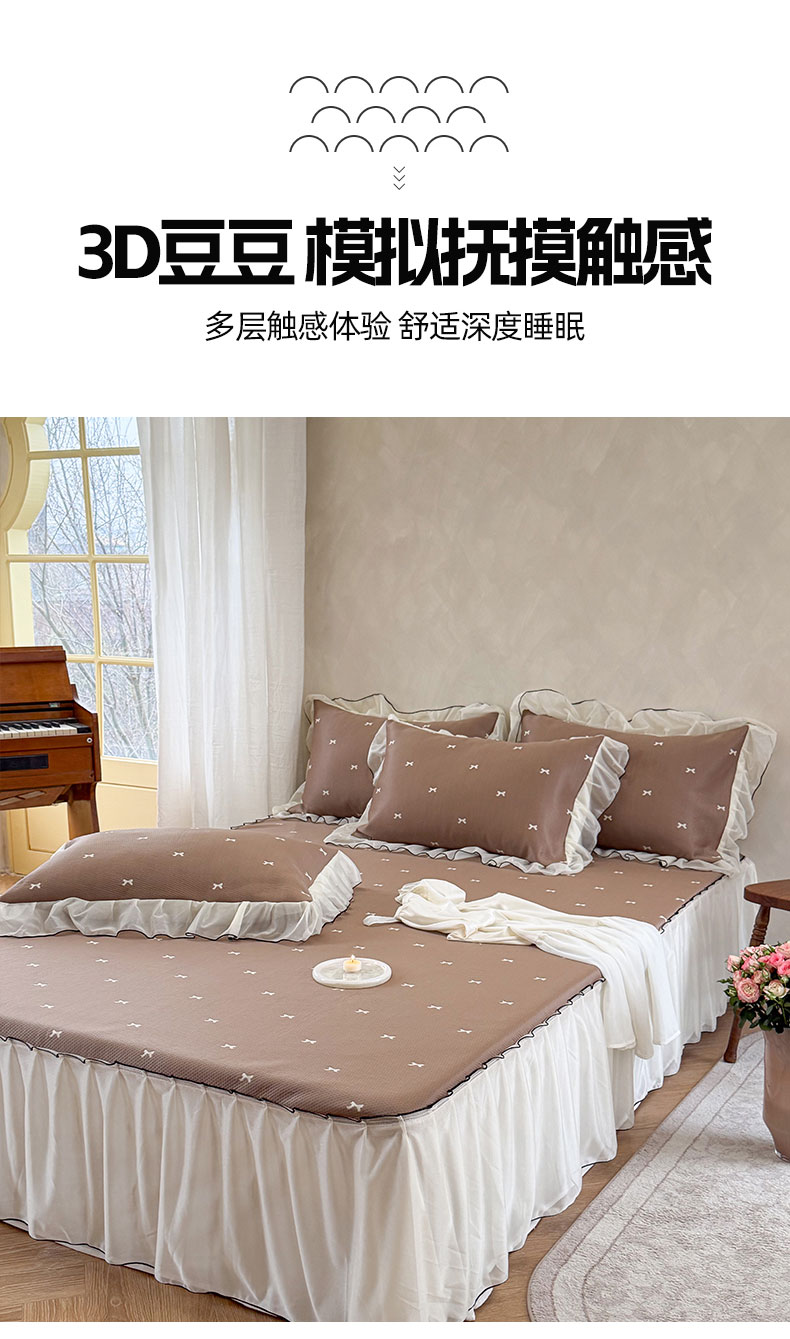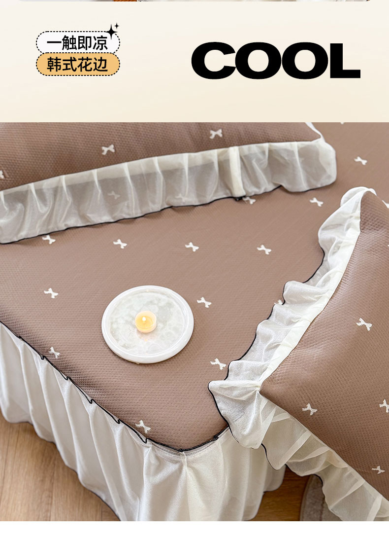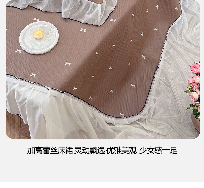 当前位置: 91家纺网 > 商品网购 > 床上用品 > 凉席 > 凉席套件 > 桃子家居 2026新款A类韩系仙气公主风PE凉感中分子床裙凉席蕾丝花边蝴蝶结乙纶豆豆凉席系列三件套 床裙席-仙气蝴蝶结咖