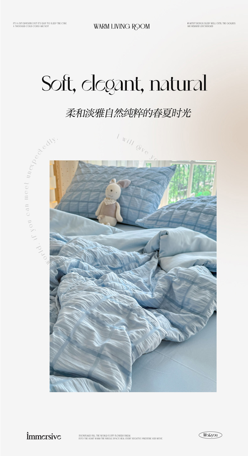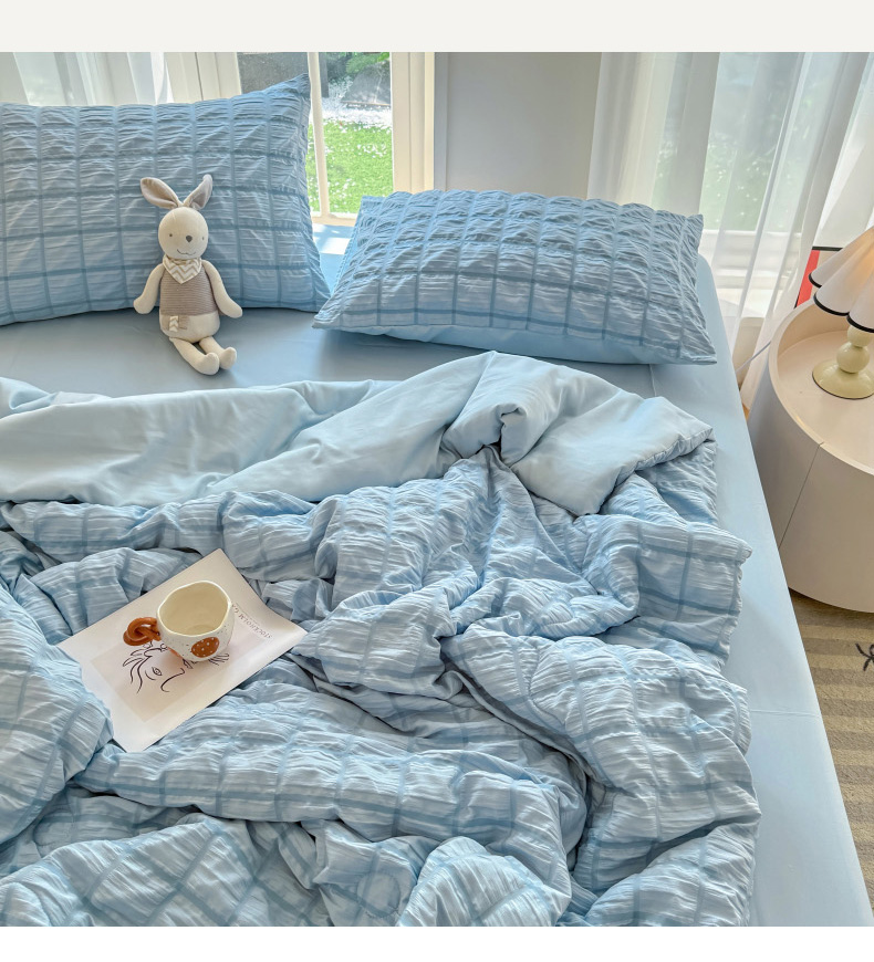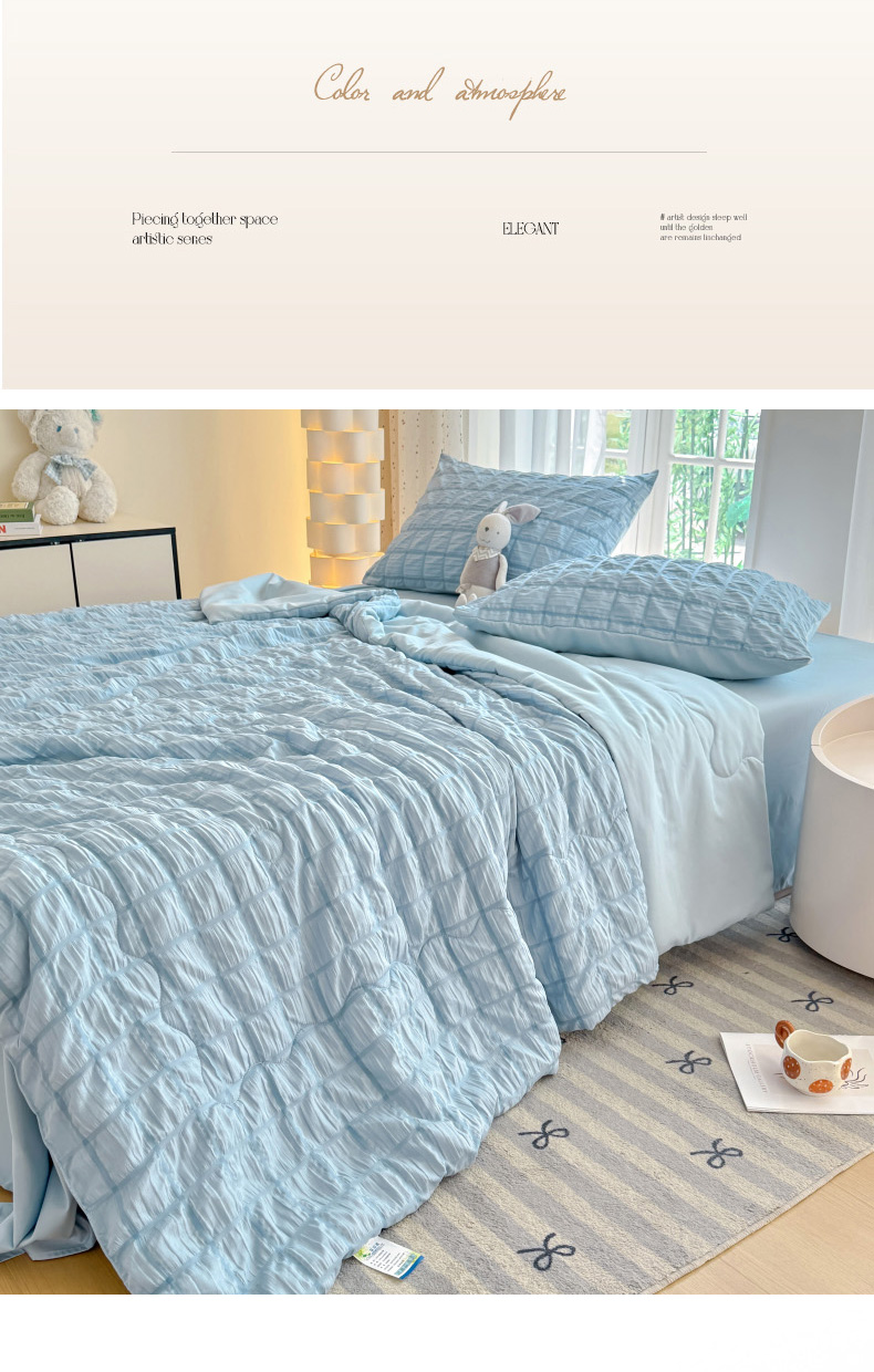 瑞禾家纺 2026新款泡泡纱夏被空调被夏凉被四件套 梦幻蓝