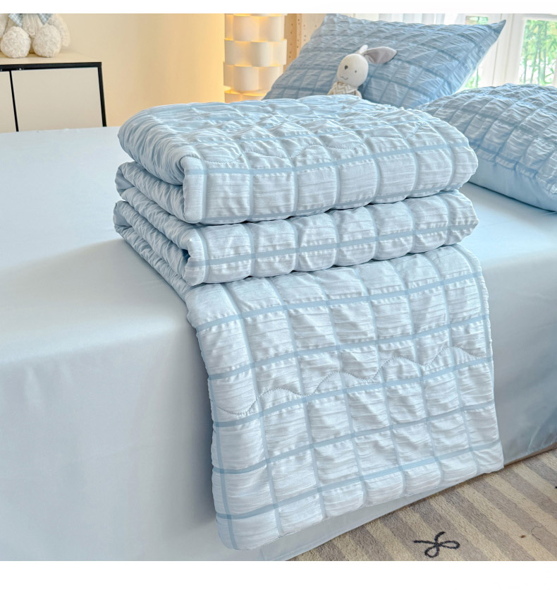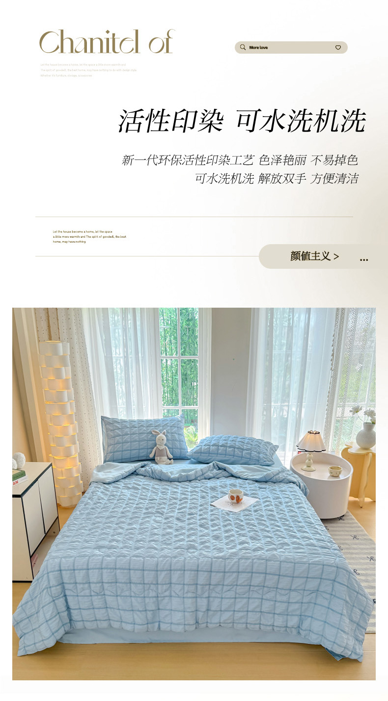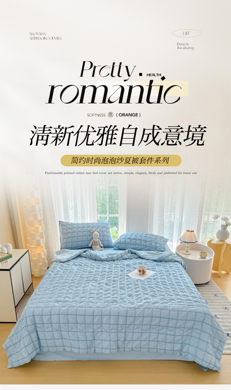 • 91家纺网 家纺一手货源 找家纺 瑞禾家纺 2026新款泡泡纱夏被空调被夏凉被四件套 梦幻蓝