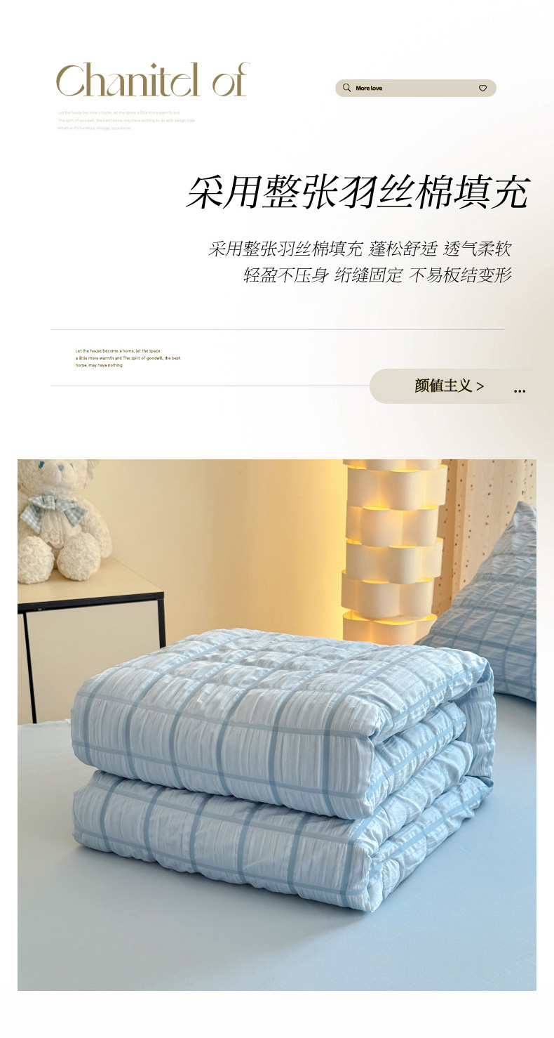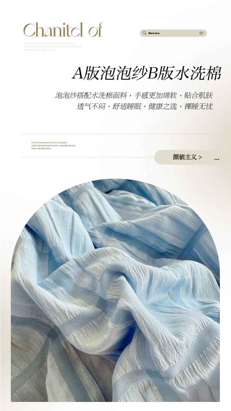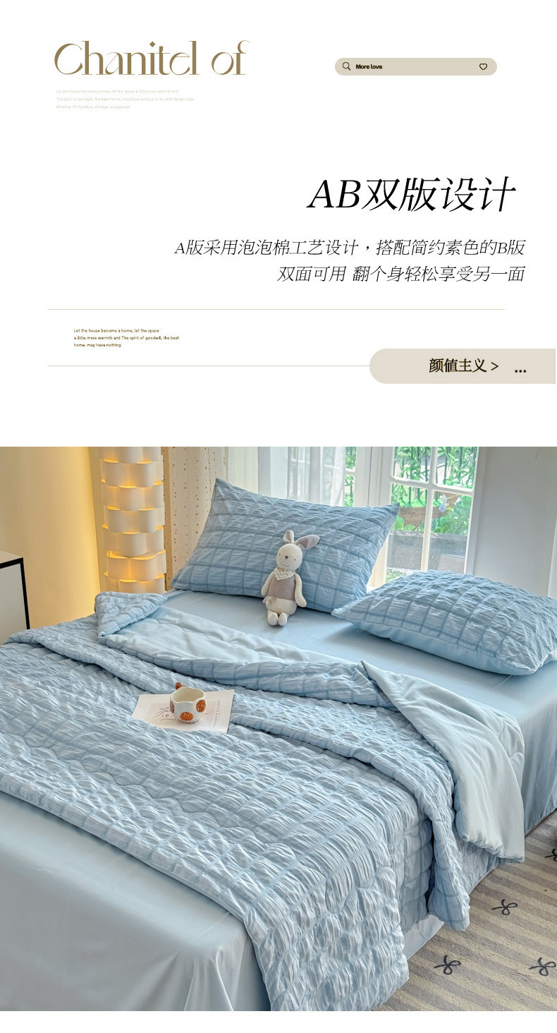 • 91家纺网 家纺一手货源 找家纺 瑞禾家纺 2026新款泡泡纱夏被空调被夏凉被四件套 梦幻蓝