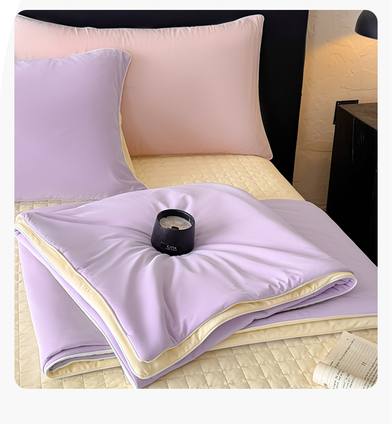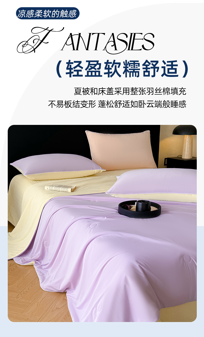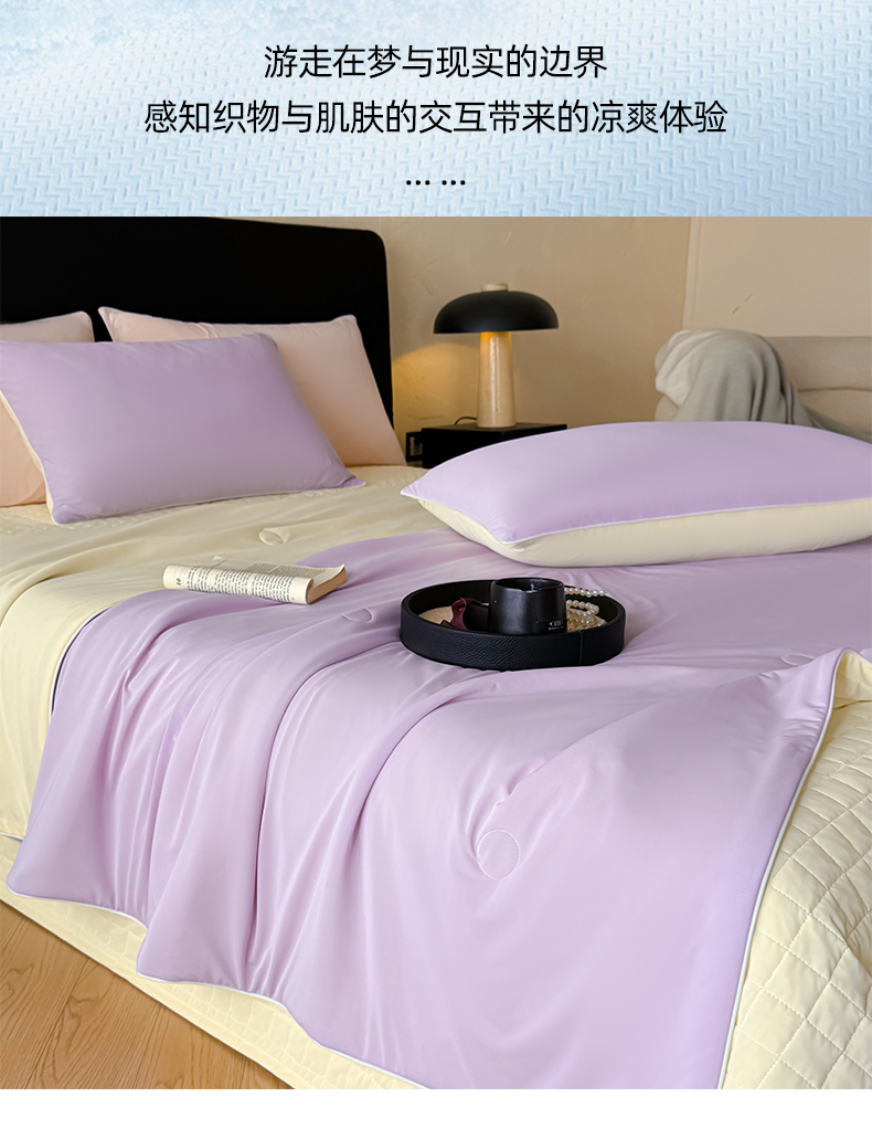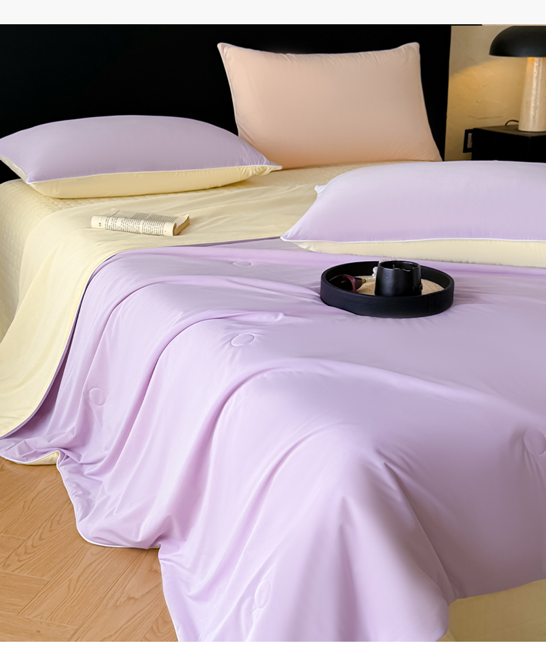 商品名称:羚羊语家纺 2026新款仿锦氨凉感夏被床盖四件套夹棉床盖纯色轻奢凉感丝夏凉被空调冰丝云母凉感被子被芯 紫陌柔黄