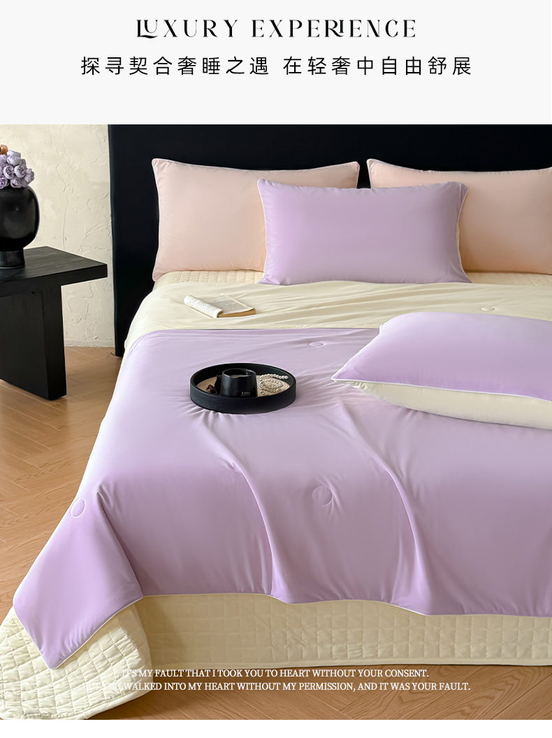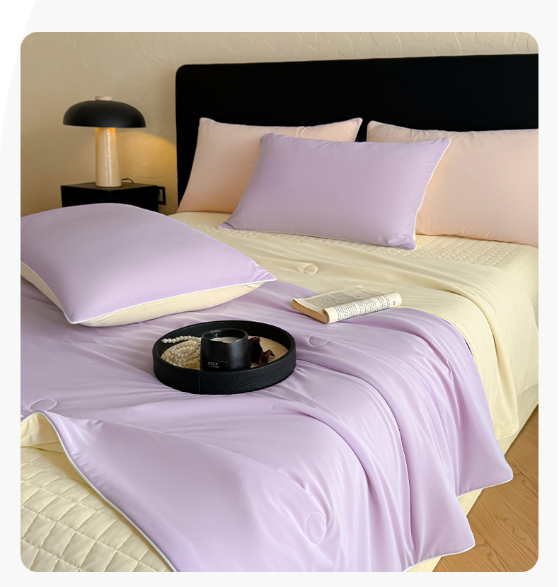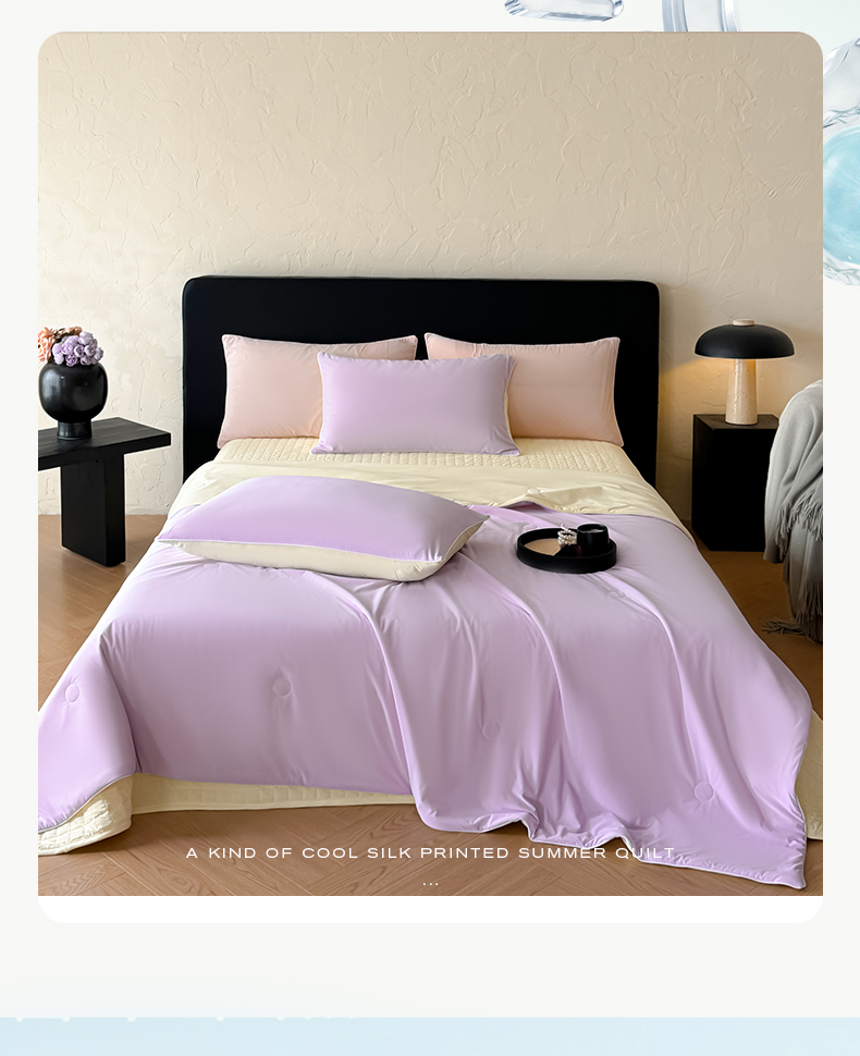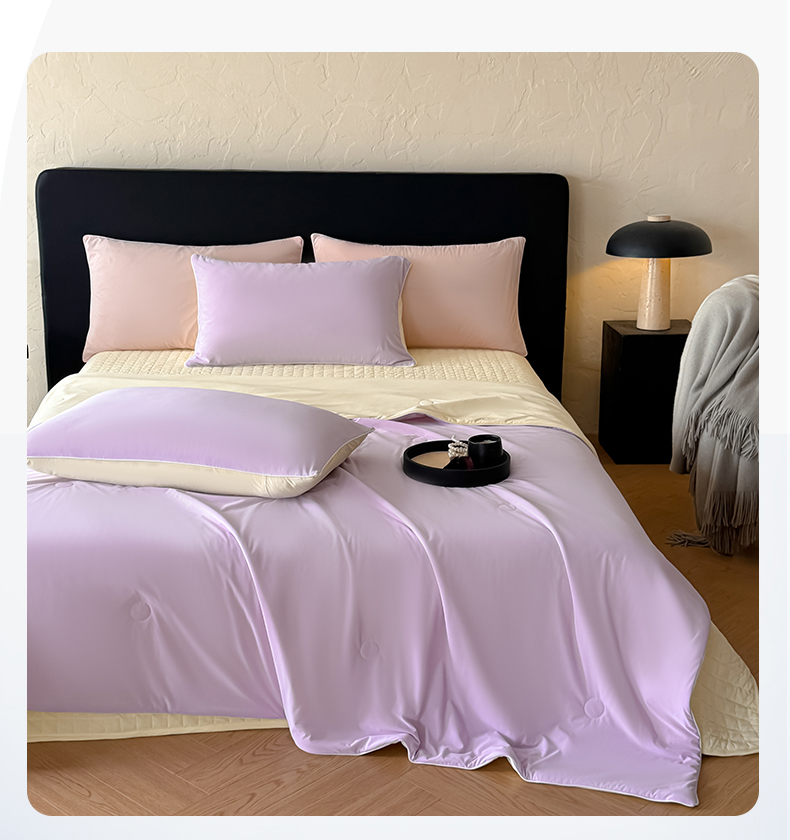 商品名称:羚羊语家纺 2026新款仿锦氨凉感夏被床盖四件套夹棉床盖纯色轻奢凉感丝夏凉被空调冰丝云母凉感被子被芯 紫陌柔黄